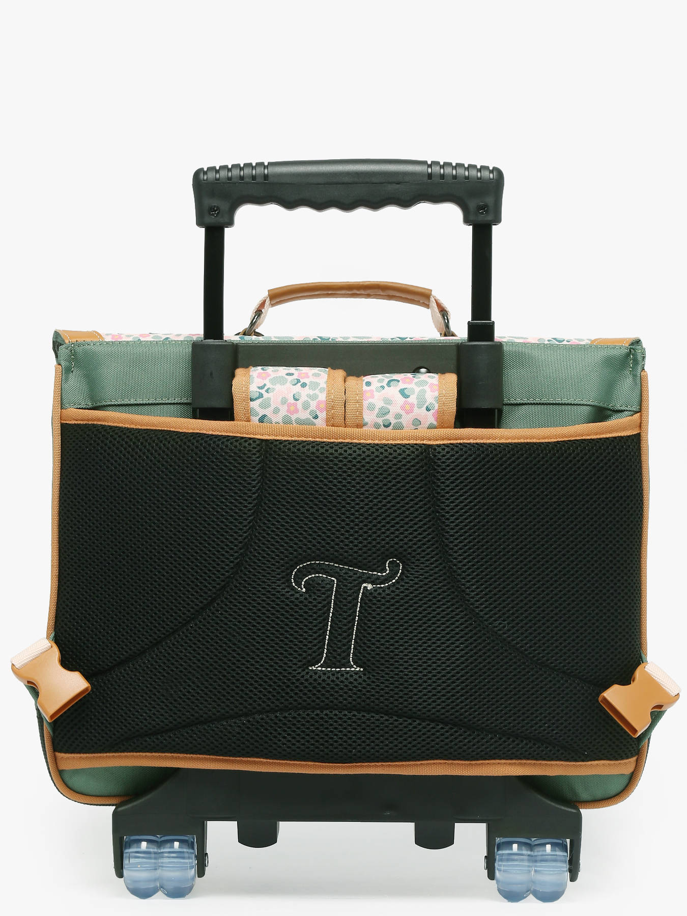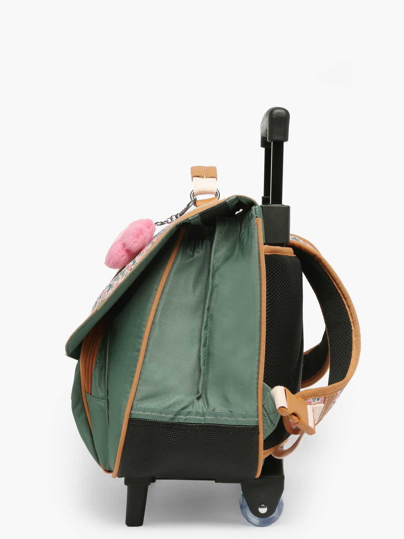 38 cm - 17 liters - 2.1 kg ~ The TANN'S 2 compartment rolling school bag is made from recycled polyester, perfect for girls aged 6 to 8. On the exterior, it features one front pocket and secures with buttons and hooks for optimal safety. Adjustable straps provide a personalized fit, allowing it to be carried by hand, on the back, or rolled for added convenience. Inside, the school bag offers two spacious compartments and one zippered pocket. It can hold an A4 folder (21x29.7 cm), several notebooks of various sizes (17x22 cm, 21x29.7 cm, 24x32 cm), a binder (17x22 cm), an A4 binder (26x32x4 cm). This school bag is ideal for keeping your child's school supplies organized and easily accessible.