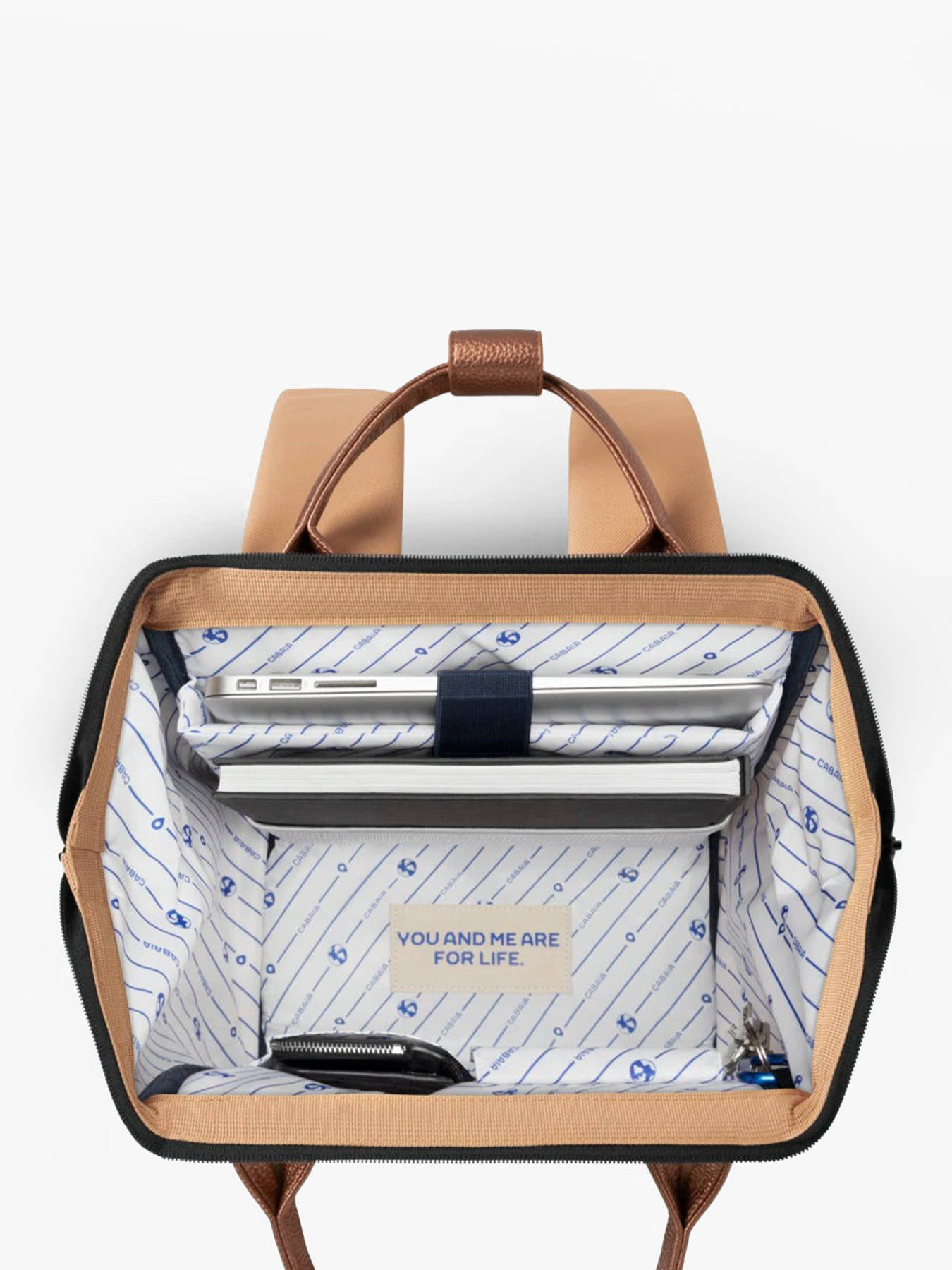 48 cm - 25 liters - 1.02 kg ~ Discover this superb backpack of the Tour du Monde line proposed by Cabaïa. This backpack is an essential accessory to go to school with style. Made out of nylon, this Cabaïa backpack is light and supple which makes it a pleasant item to carry everyday. Inside this backpack, you will find a large compartment to store a lot of school stuff such as A4 files and notebooks, but also a special compartment for a 15"" computer. There are also two small, simple pockets inside this zippered main pocket. On the front, there is an interchangeable zip pocket in which you can slip your essentials such as your phone and keys. This Cabaïa backpack from the Tour du Monde line can be worn on the back using the adjustable straps or by hand thanks to the handle and can match many outfits.