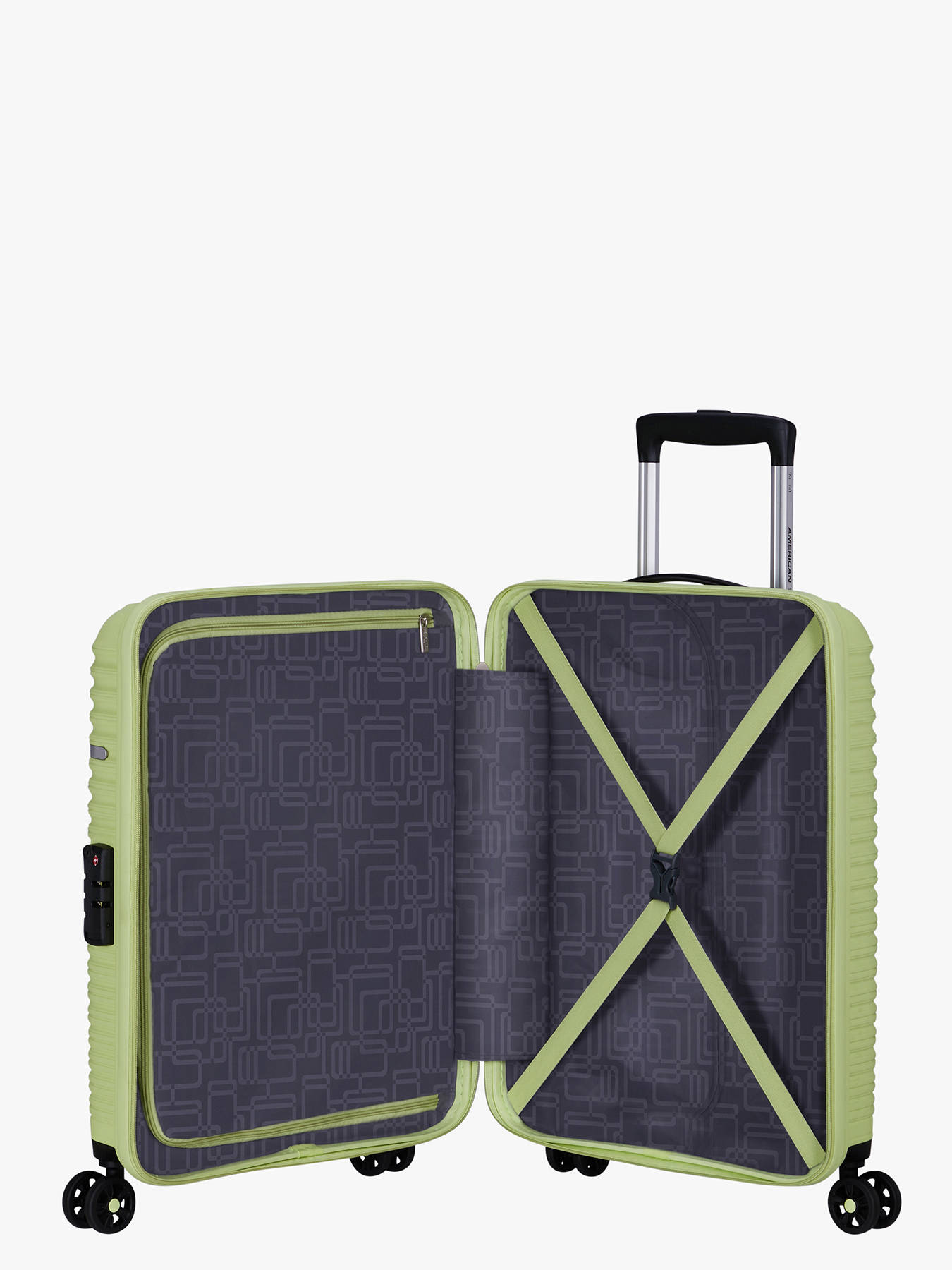 Compact, lightweight, and ultra-convenient, the American Tourister LiftOff 55 cm cabin suitcase is perfect for short getaways or air travel. Made from durable polypropylene, it combines strength with lightness at just 2.2 kg. Its 33.5 L volume can be expanded for extra space, ideal for last-minute additions. With four smooth-rolling wheels, a multi-stage telescopic handle, and top and side carry handles, it ensures effortless mobility. For added security, it features a TSA-approved combination lock. Inside, cross elastic straps and a fully lined divider help keep your belongings neatly organized. Finished with a color-matched zipper and a sleek metal logo, it boasts a modern, dynamic design—perfect for stylish travel.