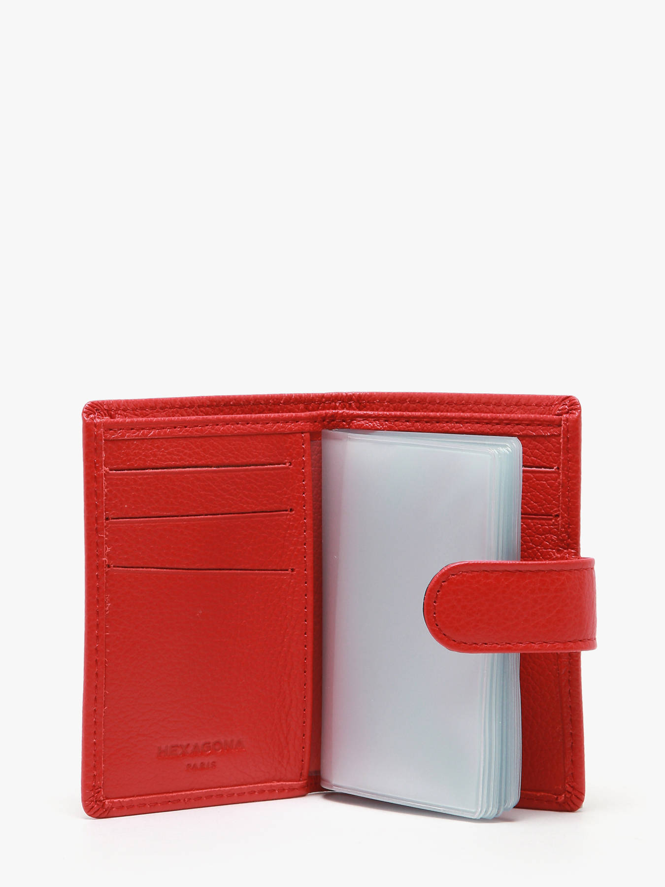 Our team immediately liked this Hexagona leather card holder for its various assets: its grained cowhide leather material, its synthetic lining, its shiny silver finish and its snap tab closure. In addition, you should know that this accessory contains inside a flap, a removable plastic sheet of twelve card slots, six card slots and a ticket pocket. Finally, this card holder is credit card compatible.