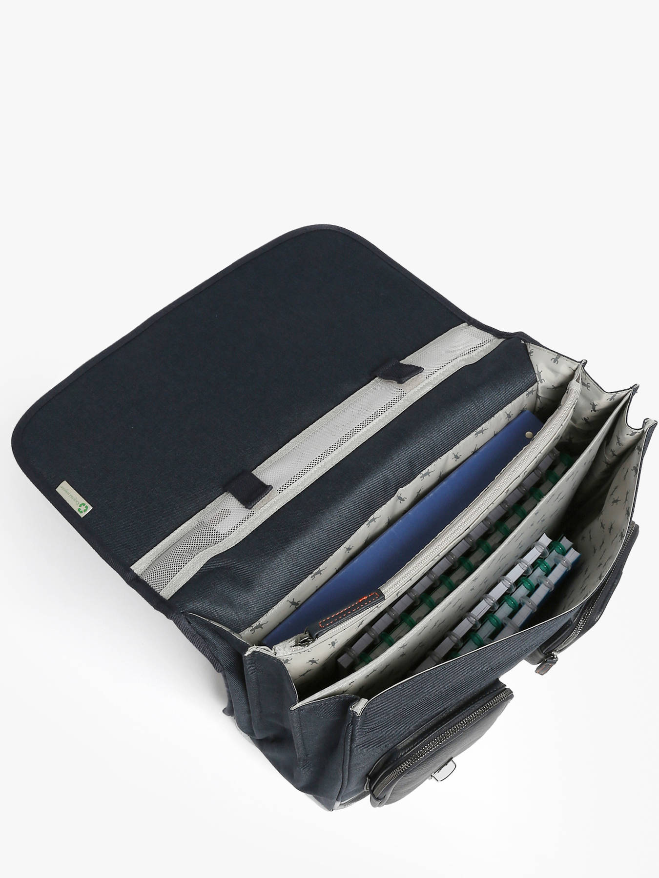 41 cm - 24 litres - 1.33 kg ~ Cartable enfant primaire 41 cm signé Caméléon de la ligne Vintage Urban. Ce cartable enfant convient parfaitement pour le CM1 et le CM2. Il se divise en trois grands compartiments pour l'ensemble des affaires d'école. Fonctionnel, il dispose d'un emplacement spécial gourde et de trois poches à fermeture éclair sur le devant du cartable. Petit plus, ce cartable dispose d'une étiquette nom. Ergonomique, la poignée et le fond du cartable sont renforcés. Très confortable, le dos et les bretelles sont rembourrés. Ce cartable est fabriqué en polyester recyclé imperméable. Côté sécurité, des bandes réfléchissantes sont disposées autour du cartable enfant. Petit plus, une règle est offerte !