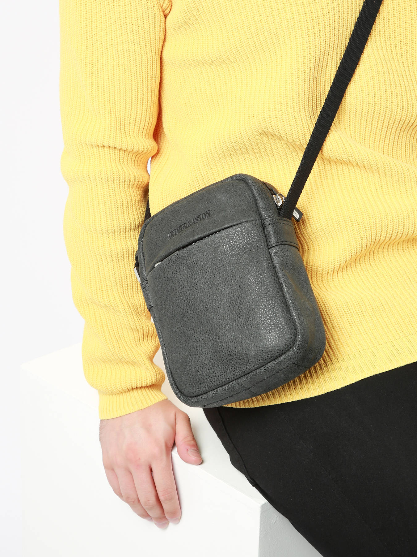 Let us introduce you the ARTHUR & ASTON leather shoulder bag, the perfect blend of elegance and practicality. Its zippered closure ensures optimal security while adding a touch of modernity. With one front and one back pocket, this shoulder bag offers storage space to keep your essentials within reach. The adjustable shoulder strap allows for a comfortable crossbody carry, tailored to your preference. Inside, there's a zippered pocket to secure your small items. Crafted from high-quality leather, this ARTHUR & ASTON shoulder bag is a top choice for style-conscious men seeking both fashion and functionality. An ideal option to stay organized with a touch of sophistication.