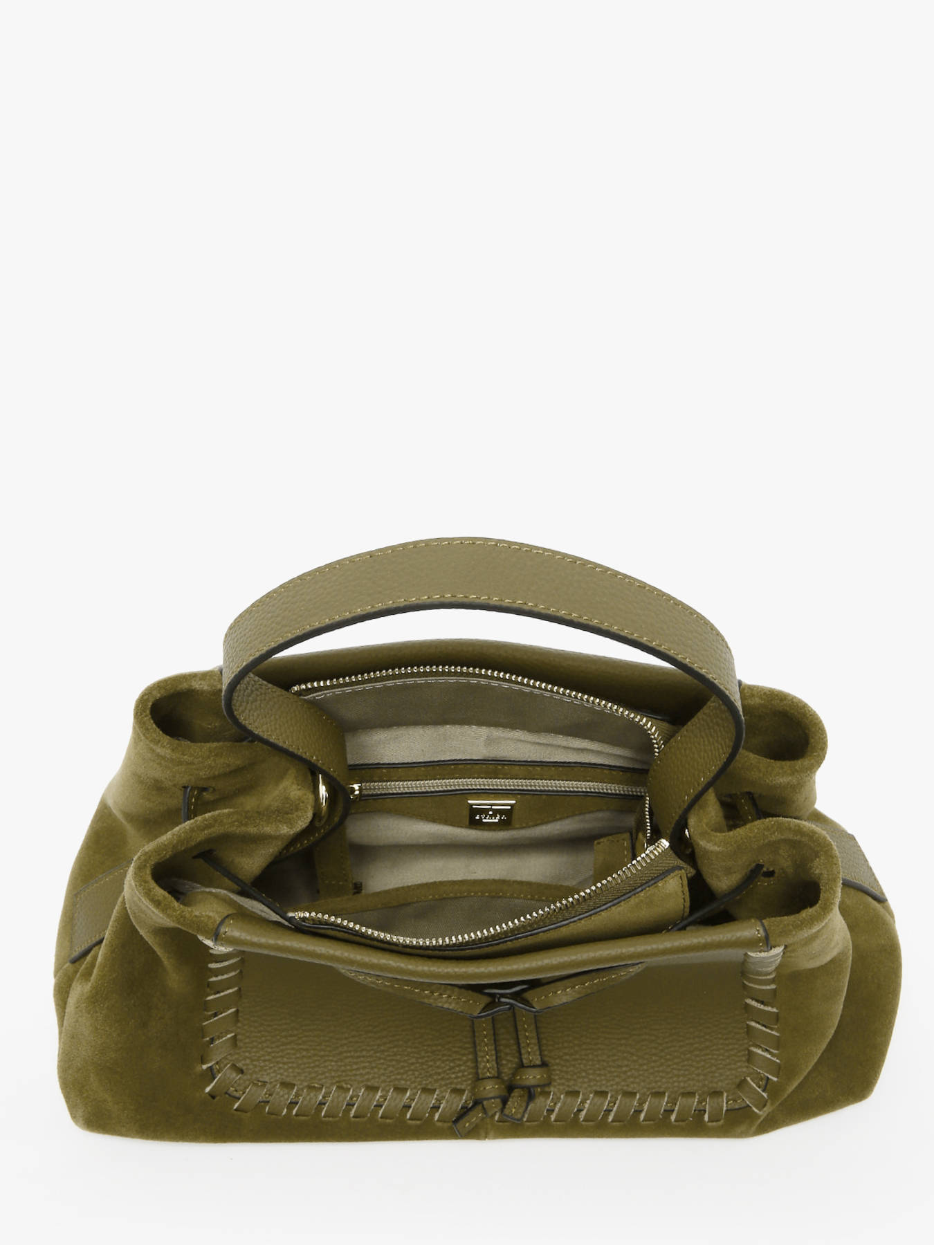 The crossbody bag from the BRUMBY line by ETRIER combines elegance and modernity with its two-tone design in smooth leather and suede leather. Its delicate weaving adds a touch of originality and refinement. This M-sized model stands out for its versatility: it can be carried by hand or worn as a crossbody thanks to its included removable strap. The zip closure ensures the security of your belongings. A chic and practical bag, perfect for accompanying all your outings in style.
