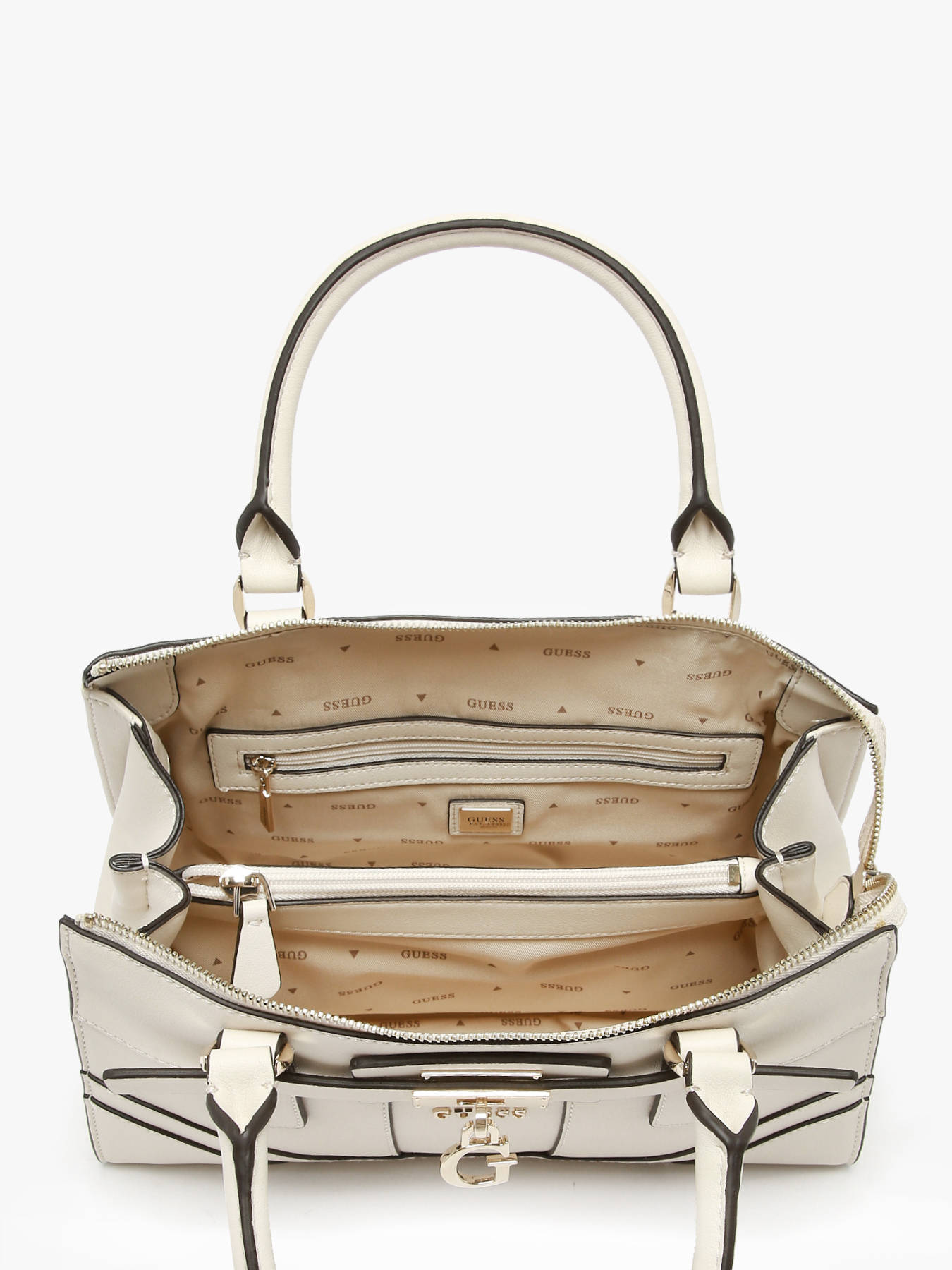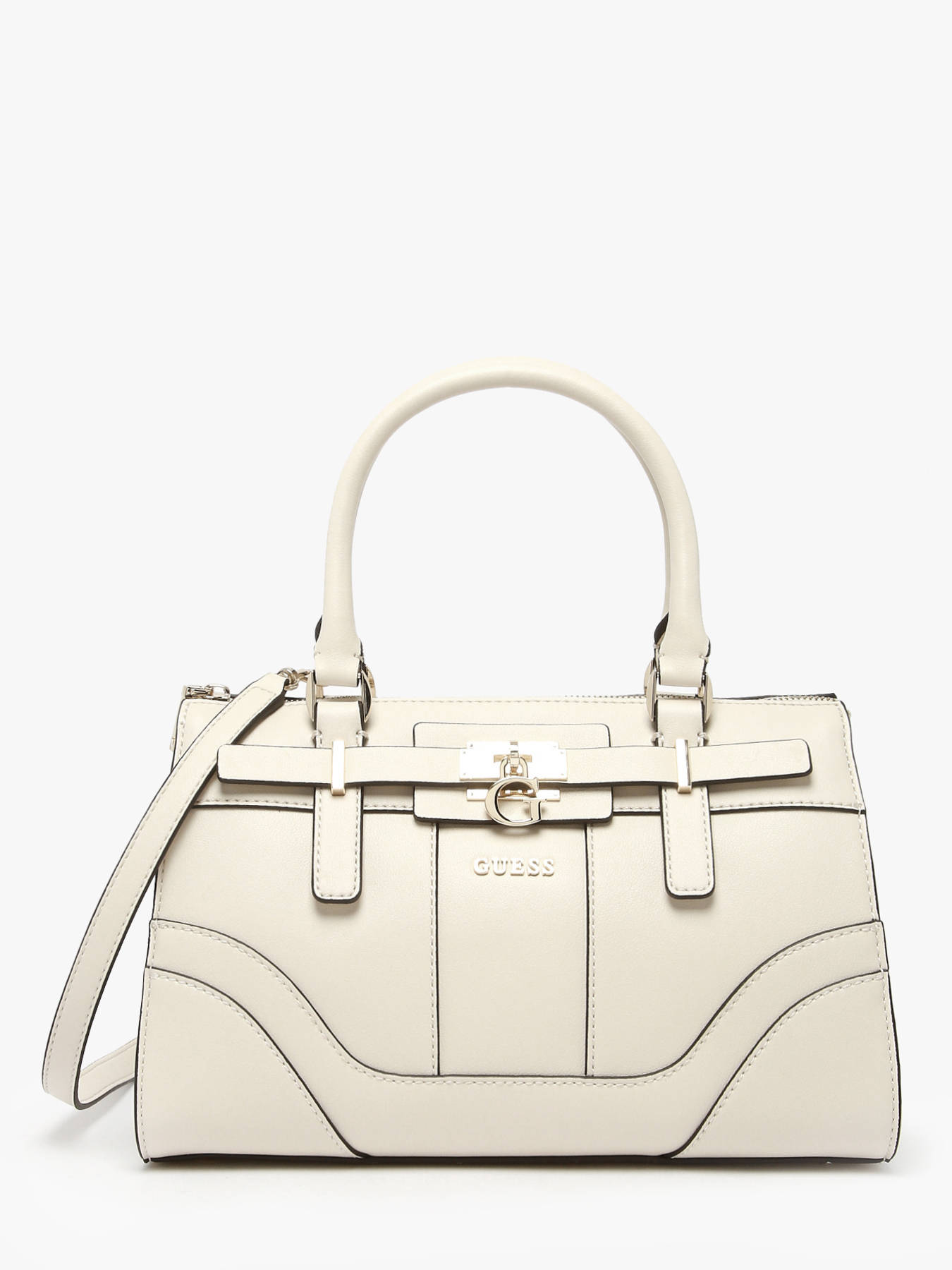 This Greyson Guess handbag, crafted from durable coated canvas, combines modernity, elegance, and functionality. Its zip closure secures your belongings while highlighting its sleek, contemporary design. The adjustable, removable shoulder strap and 13 cm handle allow for comfortable hand or crossbody wear according to your preference. Inside, two main compartments, two slip pockets, and two zip pockets provide optimal organization for essentials such as your phone, wallet, and keys. Compact yet spacious, this bag impresses with modern lines, lightweight design, and refined finishes, adding sophistication and style to any outfit. Versatile and chic, it accompanies city days, outings, or appointments, combining comfort, practicality, and fashionable appeal in an easy-to-carry accessory.