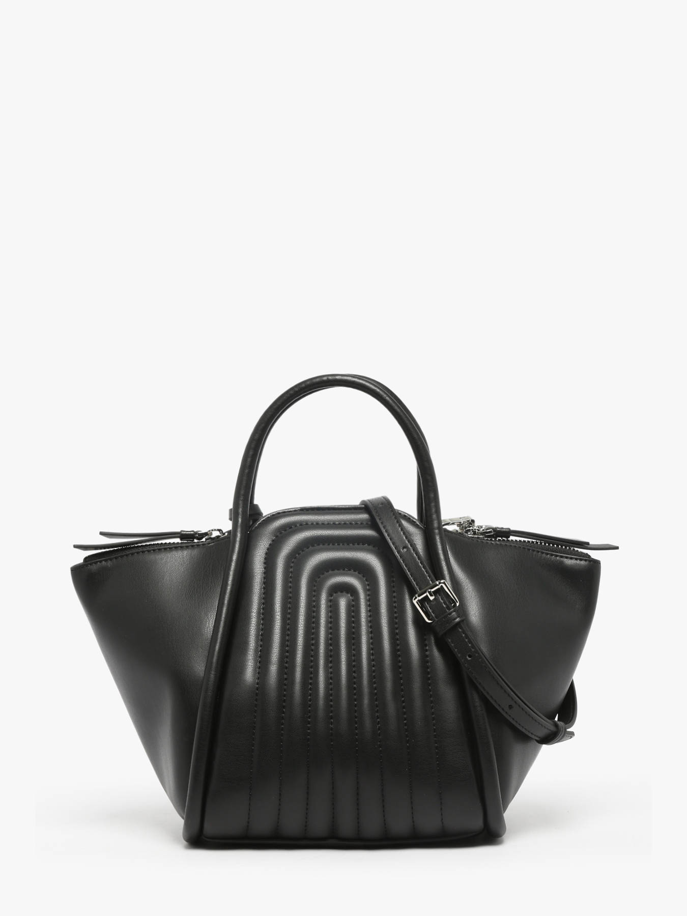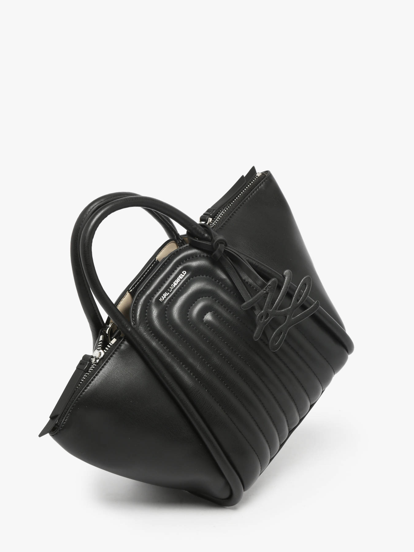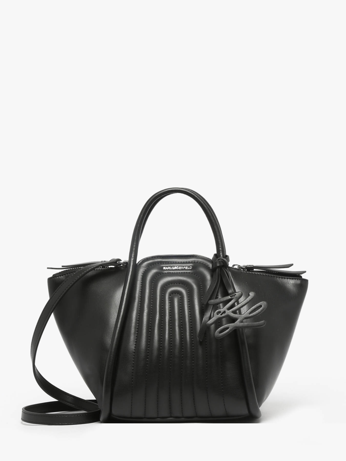 This Karl Lagerfeld handbag made of recycled polyurethane combines eco-consciousness with contemporary design. Its dual zip and magnetic closure provides optimal security while allowing easy access to your belongings. Equipped with an adjustable and removable strap, it offers great flexibility: carry it by hand or crossbody according to your preference. Inside, a spacious single compartment holds your essentials, blending practicality with elegance. This bag is the perfect companion for a sustainable and modern style, suitable for all occasions.