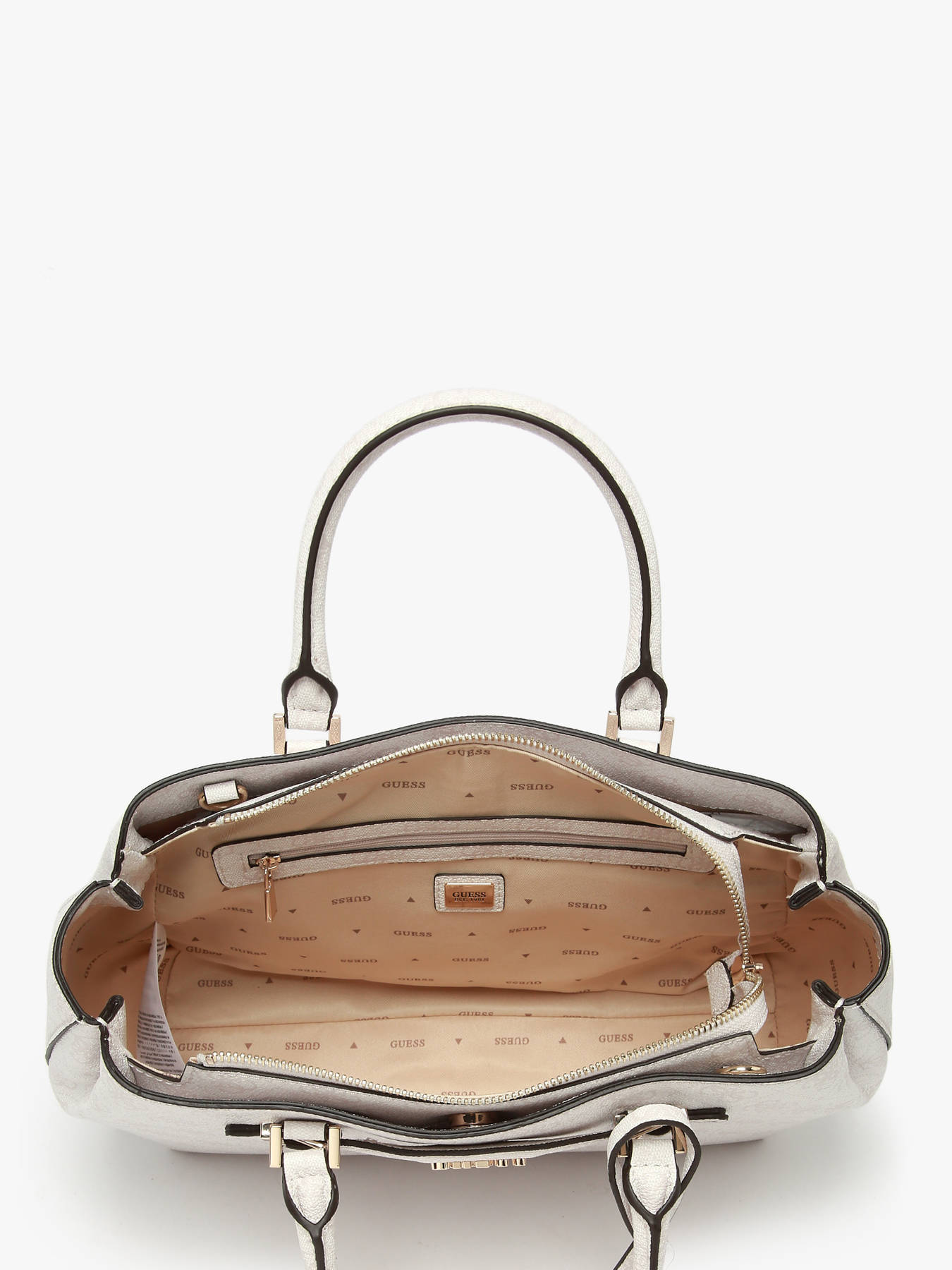 The KATYA Guess handbag, crafted from coated canvas, combines practicality and contemporary style. Its elegant design features a main compartment, two simple interior pockets, and a zip pocket, providing secure storage for your essentials. On the exterior, one front pocket and two back pockets offer quick access to everyday items. The zip closure ensures effective protection, while the adjustable and removable shoulder strap allows for versatile carrying—handheld or crossbody. With a 10.5 cm handle height, the KATYA is perfect for daily use, balancing comfort and functionality. Lightweight and durable, this bag merges elegance with practicality, making it an ideal accessory to enhance urban outfits with a modern, refined touch.