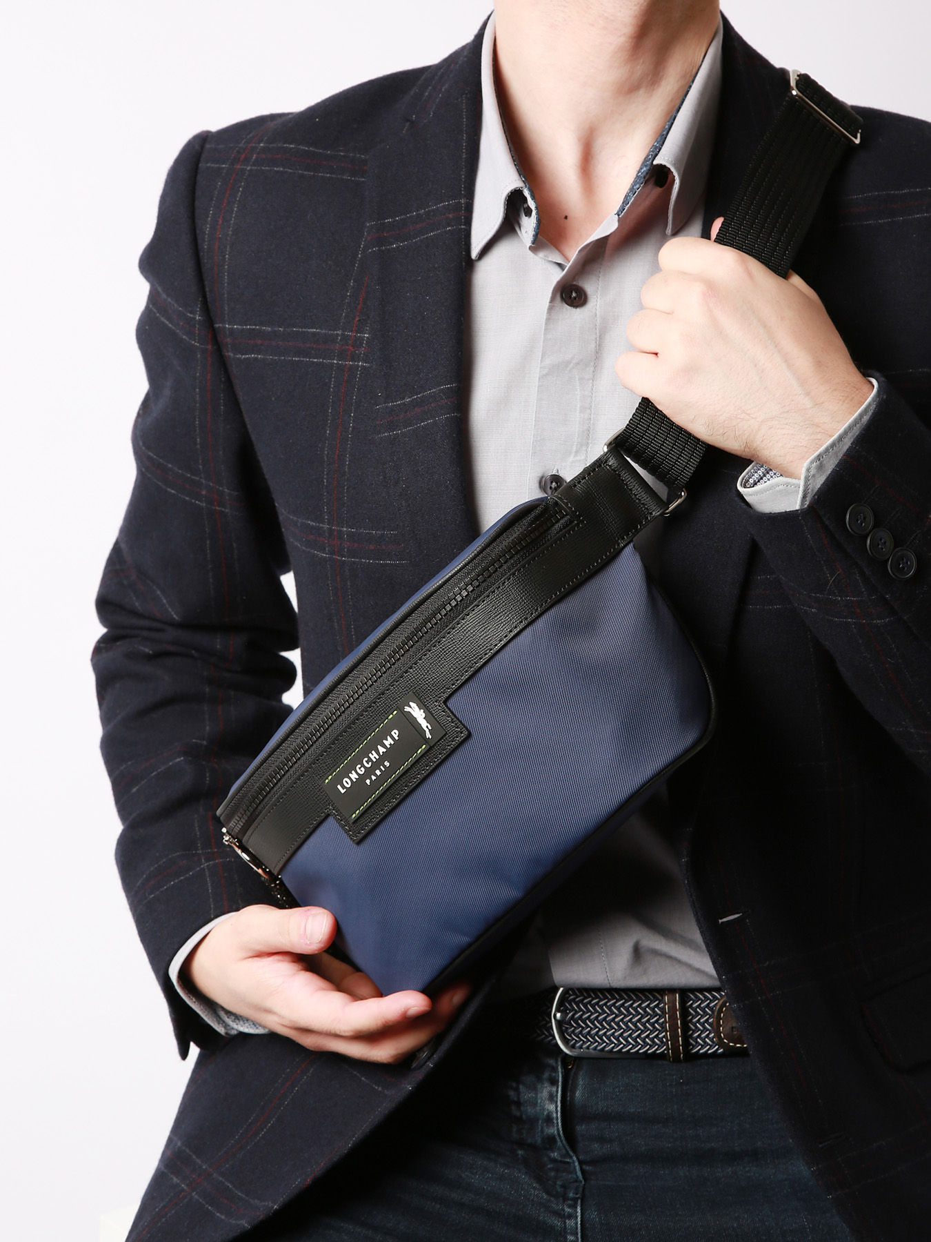 Discover the new eco-responsible collection of the Longchamp brand: ""Green District"", for an urban man always on the move, looking for a contemporary, elegant and resource-friendly leather goods. The red thread: the use of ECONYL® recycled nylon. The plain canvas highlights the details of the line, such as the Longchamp label stitched with a green thread, the brand's signature color. This generously sized fanny pack can hold everything you need during the day. Its adjustable shoulder strap allows you to wear it in a variety of ways, on your belt for a more sporty and casual look, or across your body for a more fashionable look.