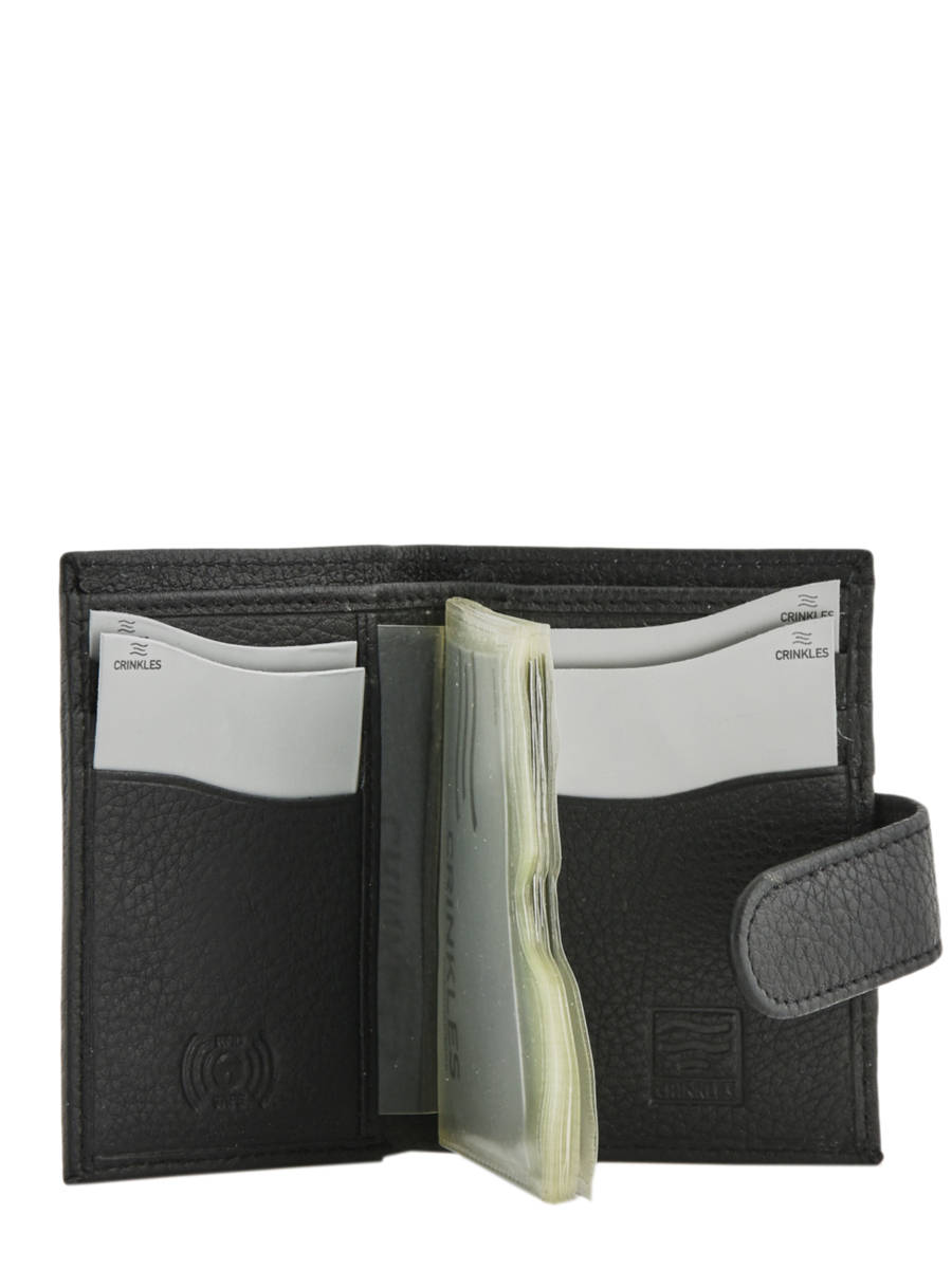 Porte-cartes en cuir de vachette issu de la ligne Caviar signé Crinkles. Ce modèle dispose de douze emplacements transparents pour cartes, un espace pour billet et six autres emplacements pour cartes (anti RFID).