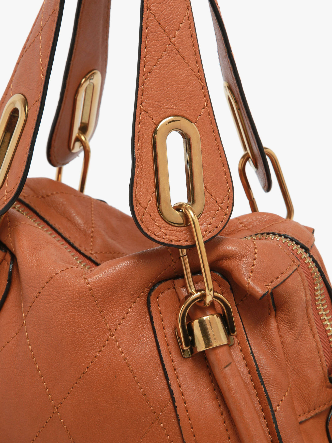 CHLOÉ Paraty handbag in calf leather, an iconic piece from the brand that blends feminine elegance with structured lines. It features a zip closure, 13 cm handle height, and a removable shoulder strap for hand or crossbody wear. The interior includes one main compartment and a zipped pocket to keep your essentials organized. This Grade AB bag is in very good overall condition with minor signs of wear.