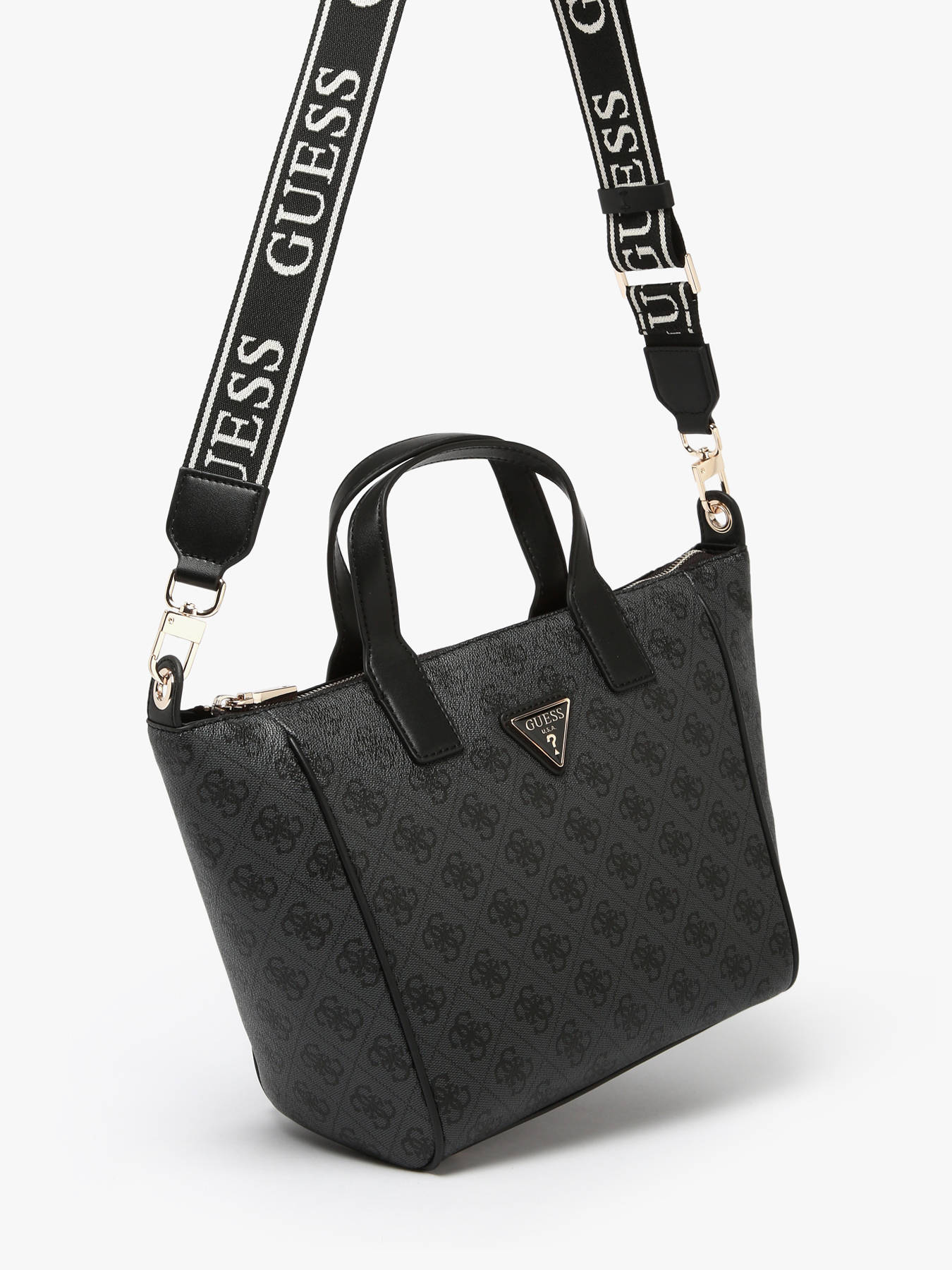 The FOLLIE GUESS handheld bag, made of P.U., combines elegance and practicality for everyday use. Its exterior features a secure zip closure and a 12 cm handle for comfortable handheld carrying. The adjustable and removable shoulder strap offers great flexibility, allowing crossbody wear according to your preference. Inside, it features a single compartment complemented by a simple pocket and a zippered pocket, ideal for organizing your essentials carefully. The FOLLIE bag combines modern style and functionality, perfect to accompany all your outings with chic simplicity.