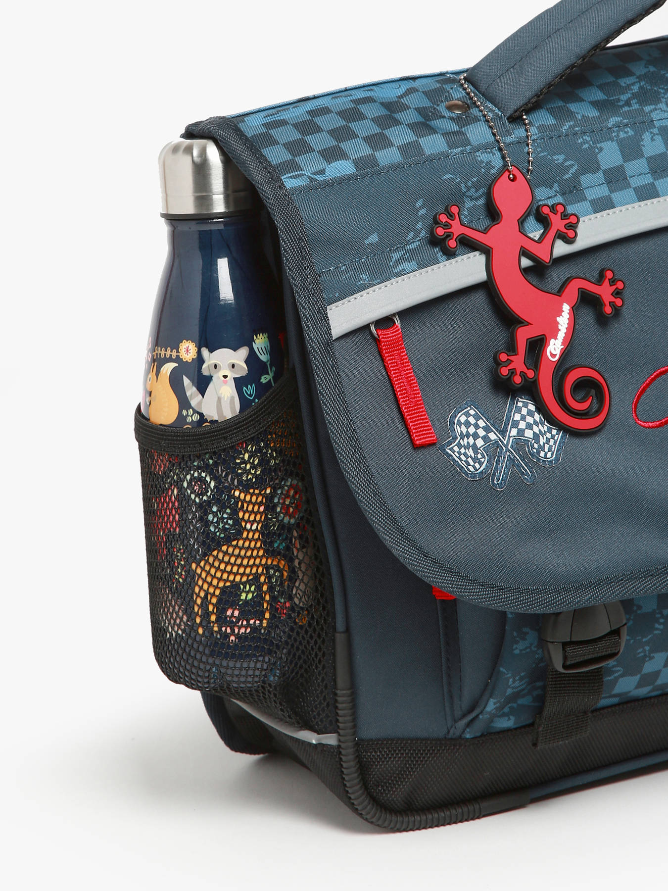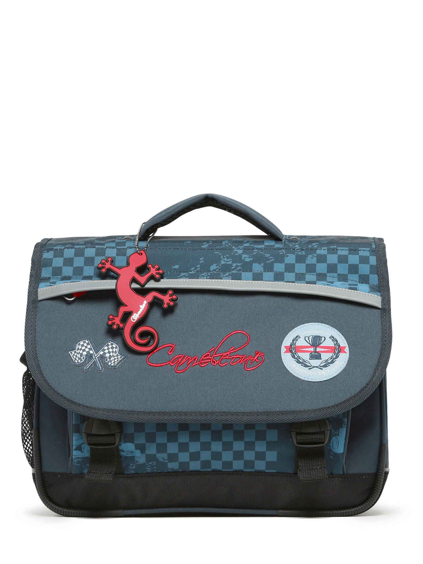 35 cm - 8 liters - 0.96 kg ~ 35 cm children's schoolbag from the Actual line by Caméléon. Perfect for kindergarten and Year 1. The inside of this schoolbag is divided into two compartments separated by a central zipped pocket, designed to hold notebooks sized 21x29.7 cm and 24x32 cm. This 35 cm schoolbag features a side holder for a water bottle and a dedicated space for a ruler. For better support, the back and shoulder straps are padded. The corners and bottom of the bag are reinforced. In addition to being comfortable and durable, this children’s schoolbag has reflective strips all around to ensure maximum safety. A little extra: it comes with a name tag on the back, a free ruler, and is made from waterproof recycled polyester.