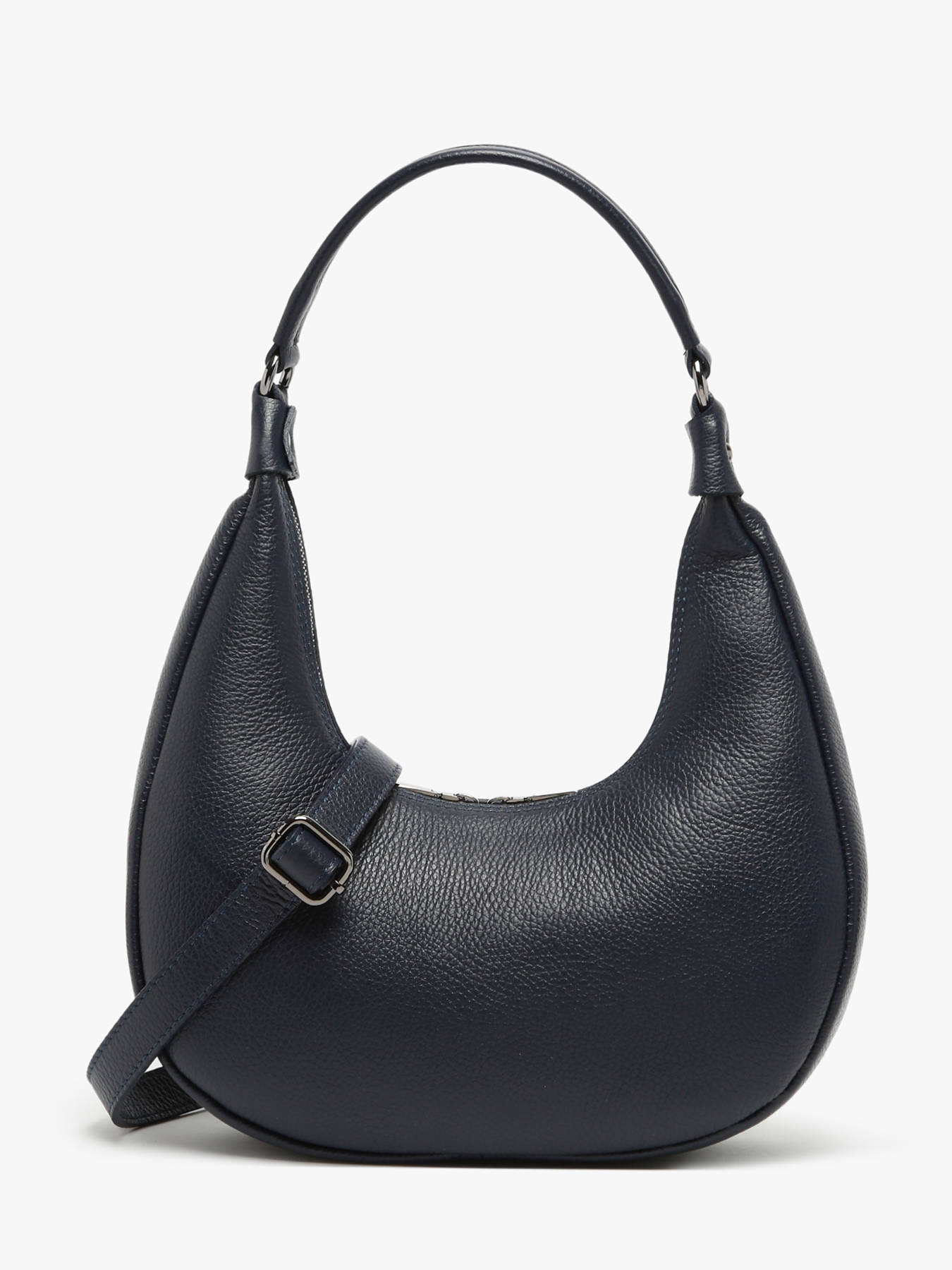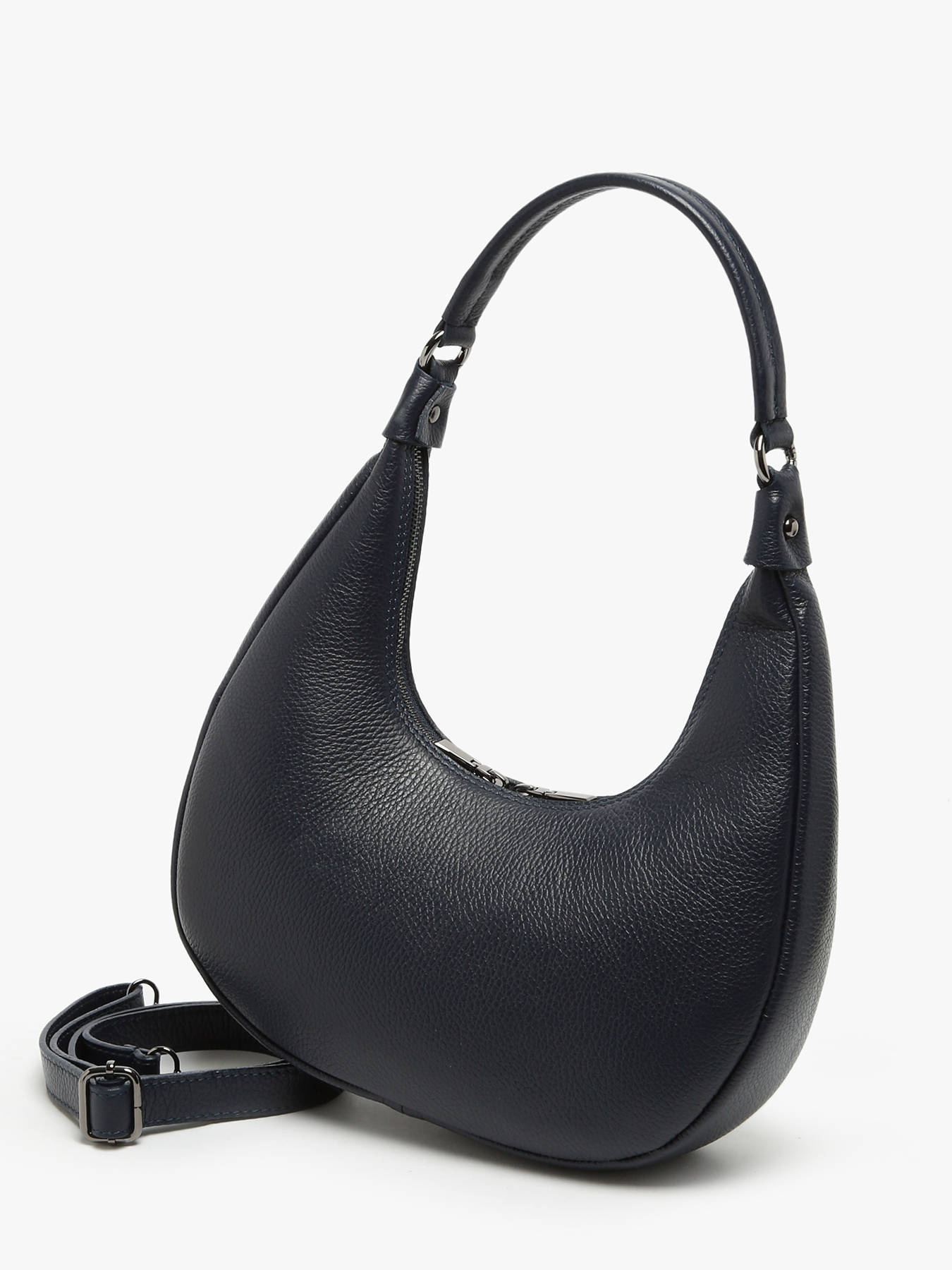 The MILANO shoulder bag, crafted from premium cowhide leather, combines elegance and functionality. With its timeless design, it offers great practicality through multiple carrying options: on the shoulder or crossbody, thanks to its adjustable and removable strap. The exterior features a convenient back zip pocket for your small essentials. The spacious and well-organized interior includes one main compartment, one slip pocket, and one zipped pocket to keep your belongings easily accessible. Its zip closure ensures your items stay securely stored. The handle's 30 cm drop provides comfortable wear for any occasion. This versatile and sophisticated model seamlessly transitions from busy days to elegant evenings.