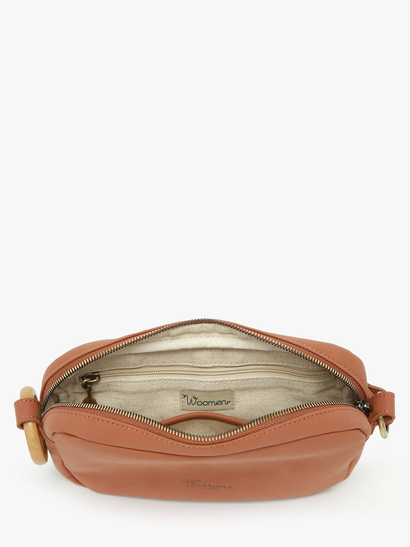 The WOOMEN crossbody bag from the HELICONIA line, in a camera bag shape, combines modernity and functionality with its subtle ring details. Made of polyurethane composed of 58% recycled materials with a cotton and linen lining, it features a back pocket, a single compartment, a slip pocket, and a zip pocket. Its adjustable strap ensures comfortable crossbody wear, making this accessory a stylish and responsible essential.