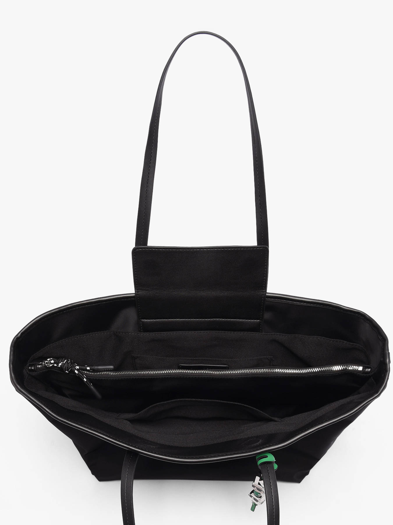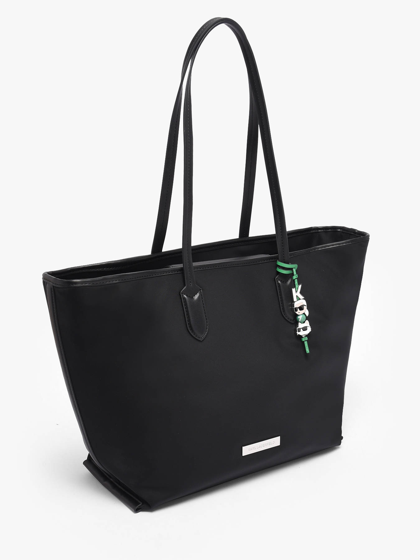 The KARL LAGERFELD K IKON shoulder bag is made from recycled polyester, combining environmental consciousness with contemporary style. Its clean, modern design is enhanced by a magnetic closure that offers easy access while keeping your belongings secure. The 28 cm handle height ensures comfortable shoulder wear, ideal for everyday use. Inside, the bag features two separate compartments, along with two simple pockets and one zip pocket, allowing optimal organization of your essentials. This model perfectly embodies KARL LAGERFELD’s innovative and responsible spirit, offering both functionality and elegance. Perfect for complementing any outfit, this bag is a must-have for the active woman mindful of her ecological impact.