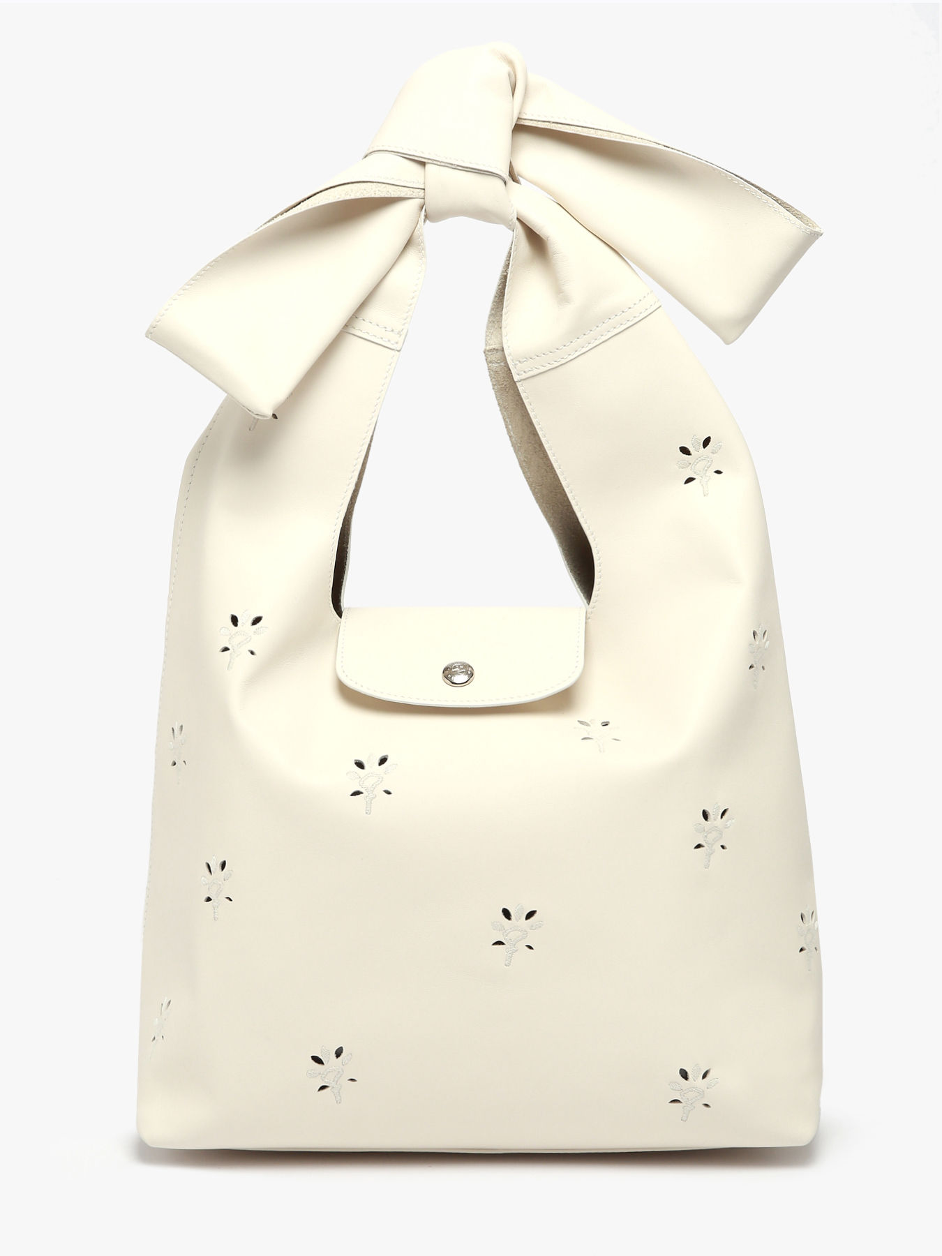 This M Le Pliage Xtra shoulder bag in cowhide leather embodies refinement and femininity. Its small embroidered and perforated flowers, inspired by English broderies, reflect the exceptional craftsmanship of Longchamp's leather goods. This delicate detail is enhanced by an easily tied bow, adding an extra touch of elegance to the design. The flap closure with press studs ensures security and practicality, while the handle height allows for comfortable shoulder wear. Its simple and modern design pairs perfectly with pieces from the spring-summer 2025 ready-to-wear collection, creating a chic and bohemian ensemble. This bag, both dynamic and timeless, fits seamlessly into an urban, chic daily life, bringing a touch of lightness and poetry to your style.