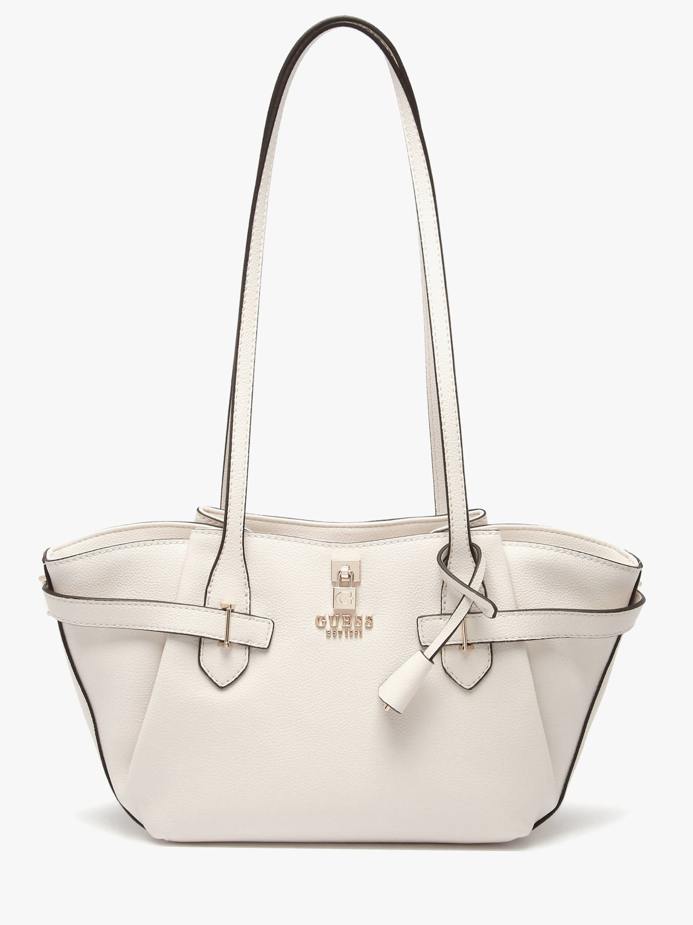 The NOELLE GUESS handbag in P.U. combines modern design and functionality. Its sleek exterior features a secure zip closure, while the 32 cm handle offers comfortable shoulder carrying, perfect for everyday use. Inside, it includes a spacious main compartment complemented by four simple pockets and one zipped pocket, ideal for neatly organizing your essentials. This versatile bag easily matches any outfit, adding a chic and practical touch to your style.