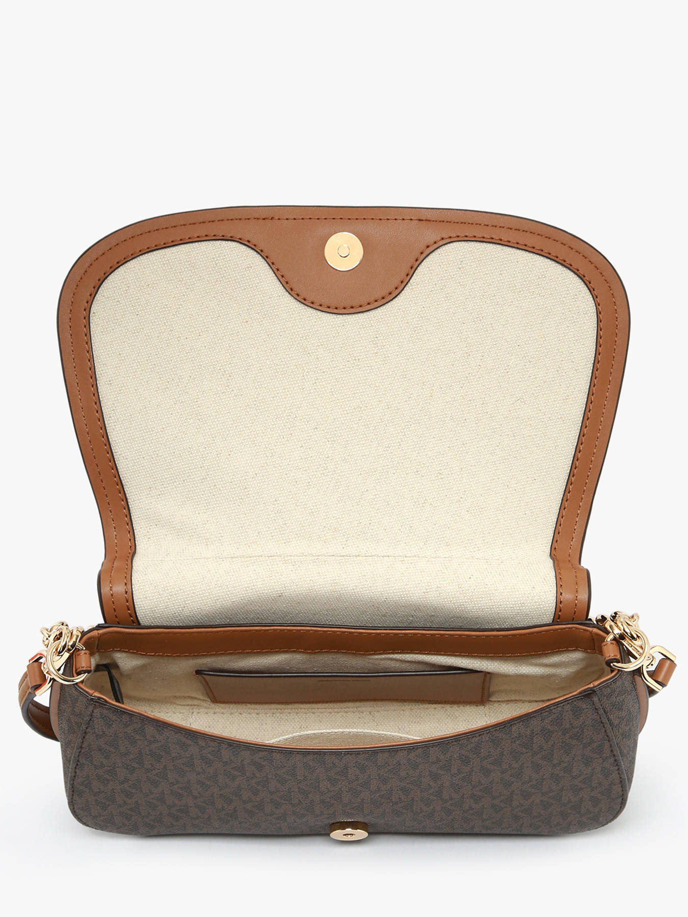 The NOLITA shoulder bag by MICHAEL KORS is made of lightweight and durable polyester. It features a flap with a magnetic closure for quick and secure access. The handle height is 26 cm, providing a comfortable shoulder or crossbody wear thanks to its adjustable and removable strap. On the outside, the bag includes a back pocket for practical storage. Inside, it has a single compartment with two simple pockets, ideal for organizing your small essentials. Stylish and functional, this bag is perfect for your active days.