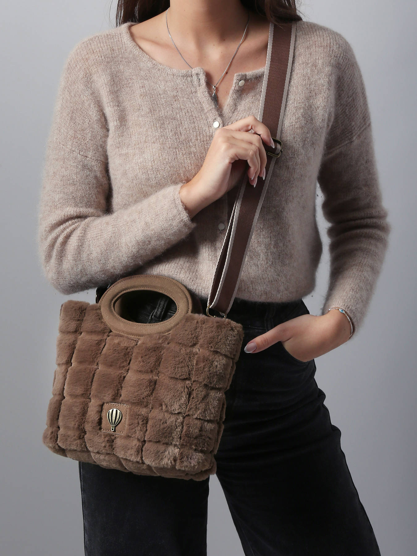 The Le Voyage en Panier Quadri Doudou handbag captivates with its softness, modern style, and everyday practicality. Made from plush-feel polyester, it combines comfort and elegance in a shoulder-bag-inspired shape. The zip closure keeps belongings secure, while the adjustable and removable strap provides versatility, allowing it to be carried by hand or on the shoulder as desired. Inside, fully lined in textile, it features one main compartment and one open pocket for optimal organization of essentials. Lightweight, functional, and refined, the Quadri Doudou is a must-have accessory for anyone seeking a practical and elegant bag, true to Le Voyage en Panier’s spirit.