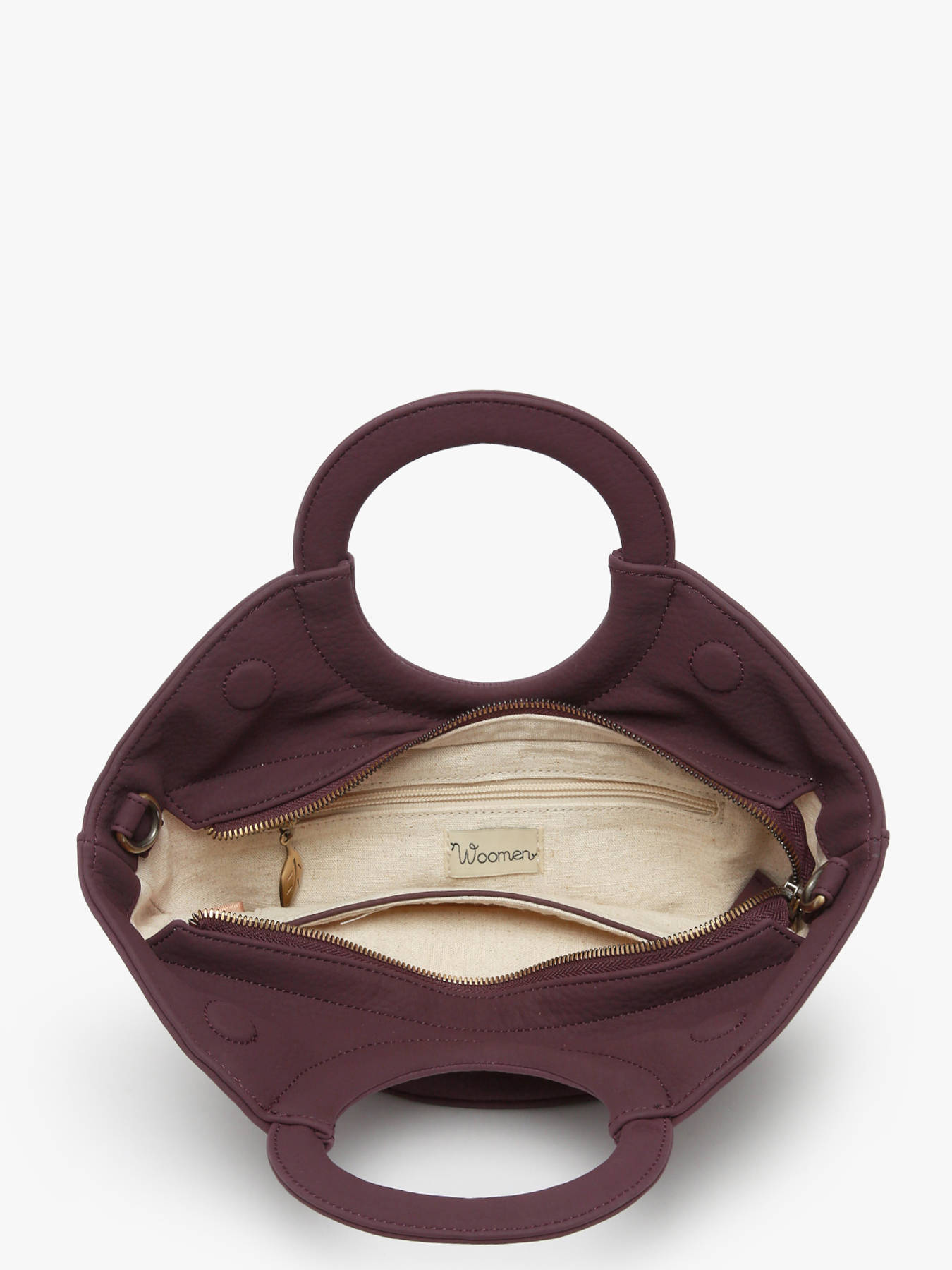 The WOOMEN crossbody bag from the NEFLIER line, in a small format with an innovative design, is made of grained polyurethane composed of 58% recycled materials with a cotton and linen lining. It closes with a zip and magnet and features an adjustable, removable strap for carrying by hand or as a crossbody. Its refined golden W resin logo adds an elegant and modern touch to this trendy and responsible accessory.