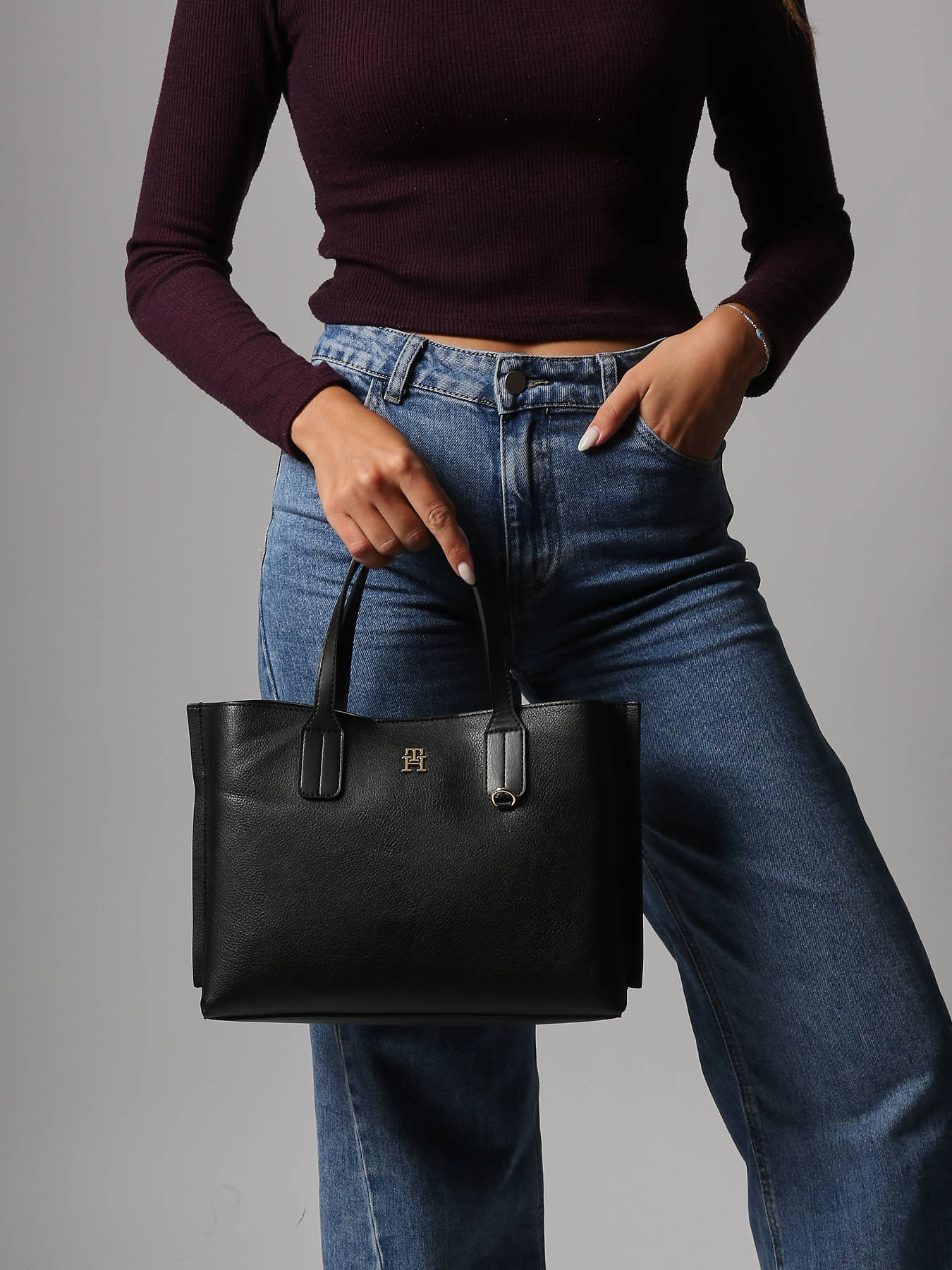 This TOMMY HILFIGER handheld bag, crafted from coated canvas, combines style and functionality. It features a magnetic flap closure for easy and secure access. The handle height is 13 cm, ideal for comfortable hand carrying. It also includes an adjustable and removable shoulder strap, allowing you to wear it crossbody if desired. Inside, a zip pocket provides secure storage for your small essentials.
