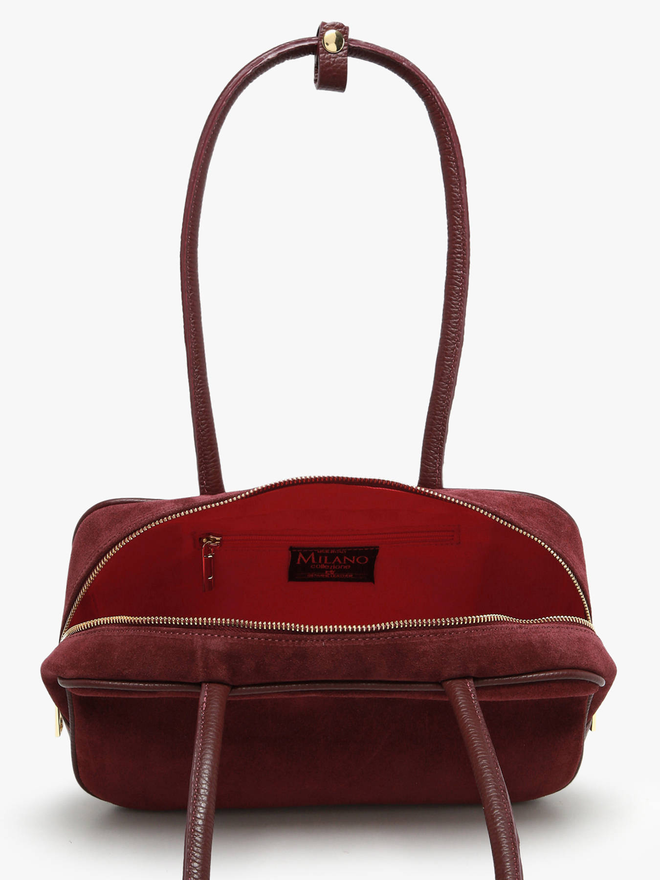 The MILANO VELVET CAVIAR shoulder bag, available in four colors, combines elegance and sophistication with its suede cowhide leather; the zip closure keeps your belongings secure while allowing easy access, and the 25 cm handle drop enables comfortable shoulder or hand carry according to your preference, with the interior featuring a main compartment and a zip pocket for practical, organized storage of your essentials; compact and refined, the MILANO VELVET CAVIAR bag adds a touch of contemporary chic to any outfit, blending polished aesthetics, functionality, and comfort for everyday use or more formal occasions.