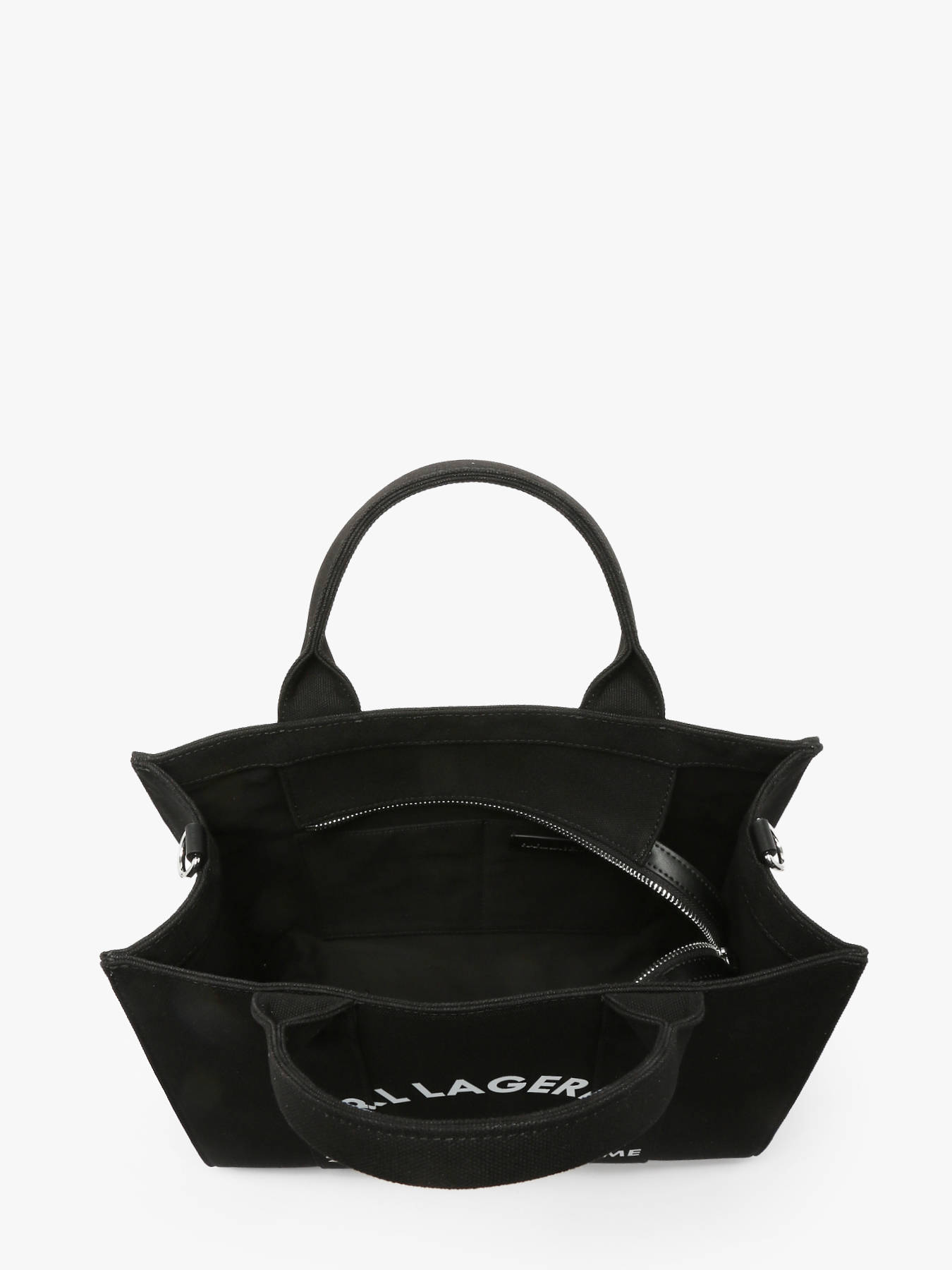 The KARL LAGERFELD cotton handbag is an elegant and versatile model. It features a modern design with a zip closure for added security. Its adjustable and removable strap allows for both handheld and crossbody wear, adapting to your needs and style. Inside, it has two simple pockets and one spacious main compartment to organize your essentials. This bag is the perfect accessory for daily use, combining practicality and sophistication while showcasing the distinct style of the KARL LAGERFELD brand.
