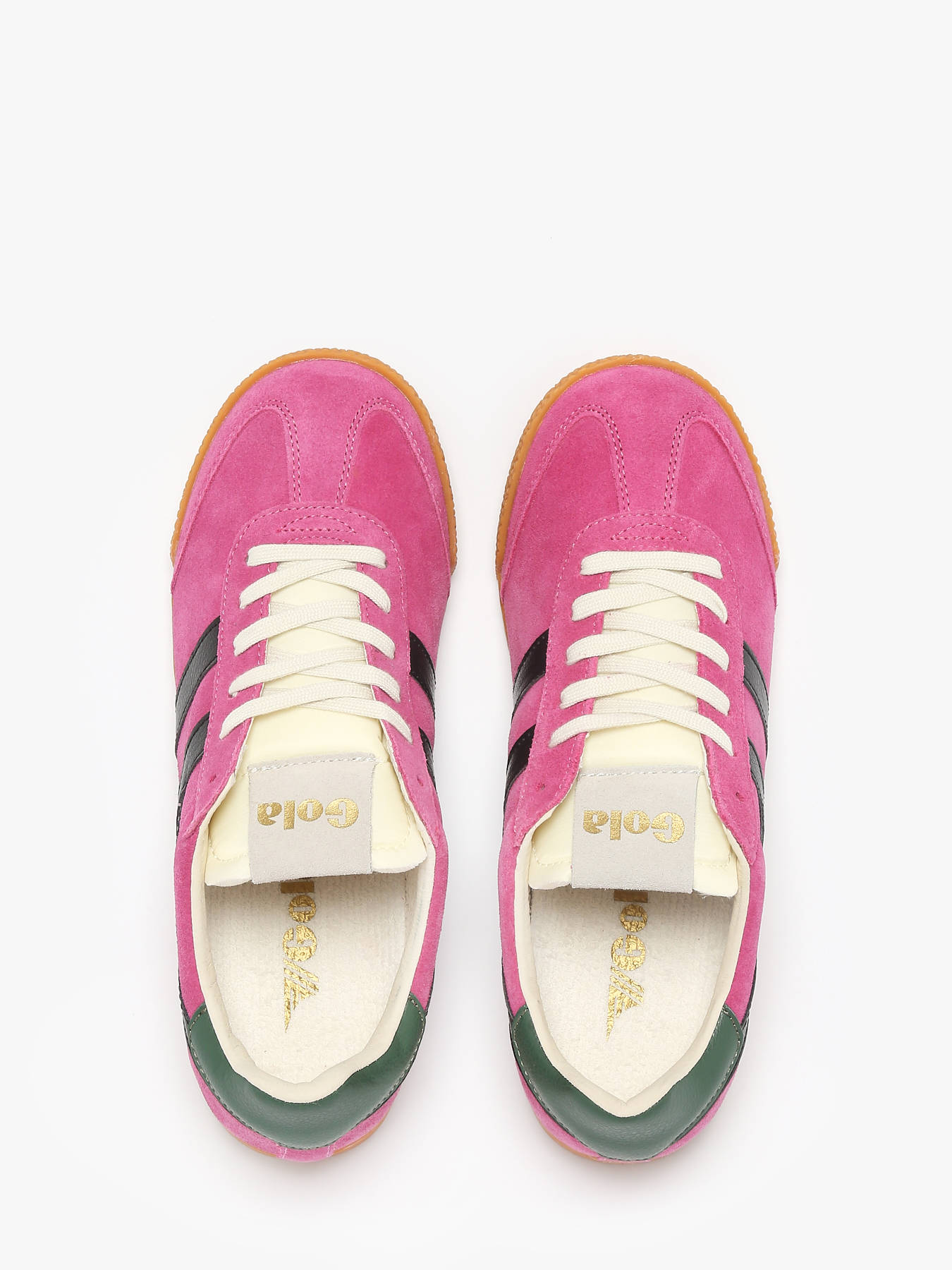 With deep roots in the sports world, GOLA presents the ELAN model, a women's sneaker blending retro charm with modern style. Inspired by versatile training shoes, it mirrors the iconic Harrier silhouette while adding a contrasting heel tab for an extra colour pop. Its vintage gum sole recalls classic gym days, while the mocha and white colourway gives it a stylishly updated twist. Made with premium suede and featuring a traditional lace-up design, ELAN is undoubtedly this season's must-have sneaker. A true favourite, it stands out for its bold look and authentic heritage, selling out fast every time it arrives in stores.