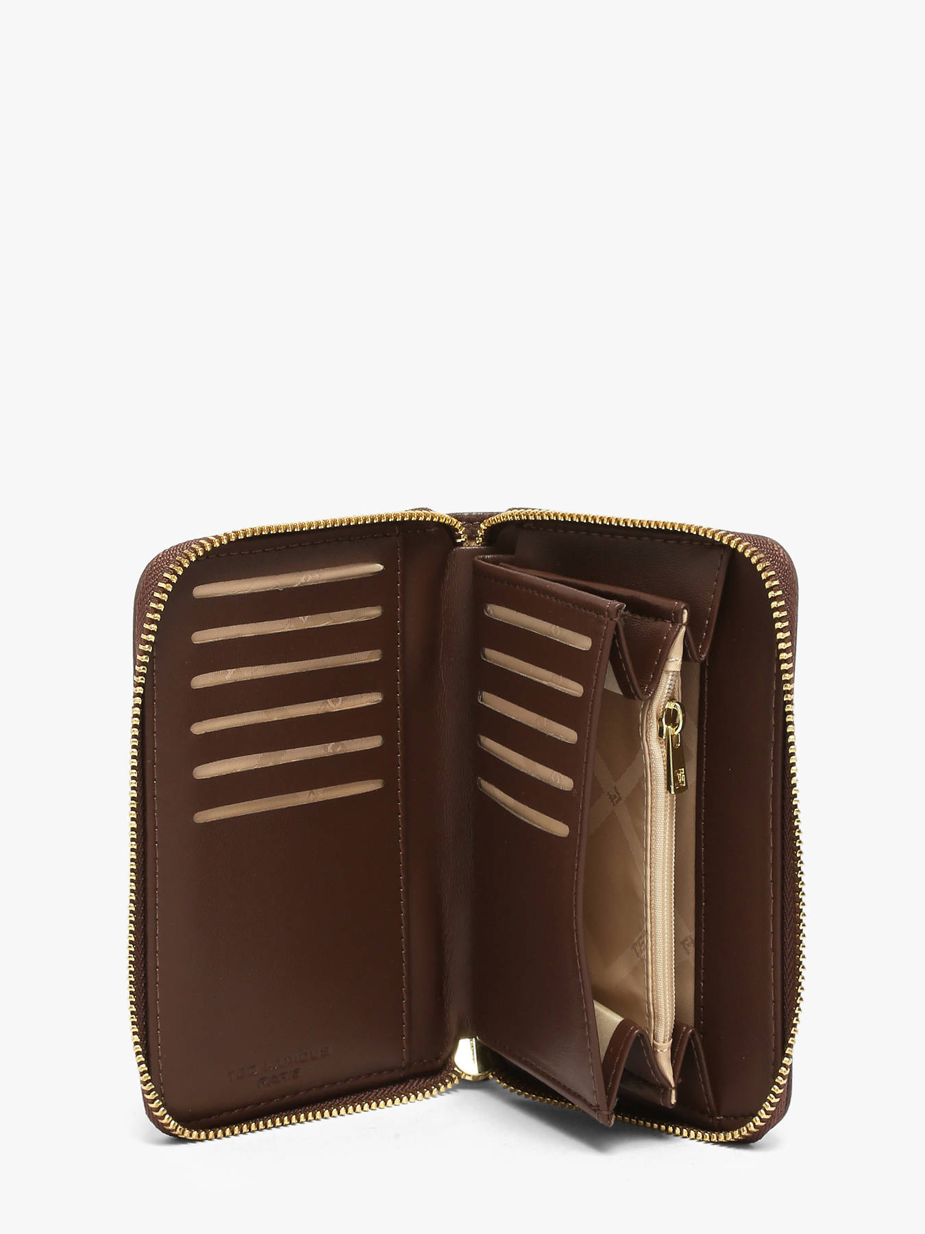 The Ted Lapidus wallet, crafted from high-quality coated canvas, embodies elegance and practicality. On the exterior, it features a main zippered pocket, ensuring the security of your bills and coins. The interior is meticulously organized, providing three simple pockets for efficient organization of your cards and bills, along with eleven dedicated slots for credit cards. An additional zippered pocket adds an extra layer of security for valuables. The full zippered closure keeps everything secure, while the refined design and functionality make this wallet an essential everyday accessory.