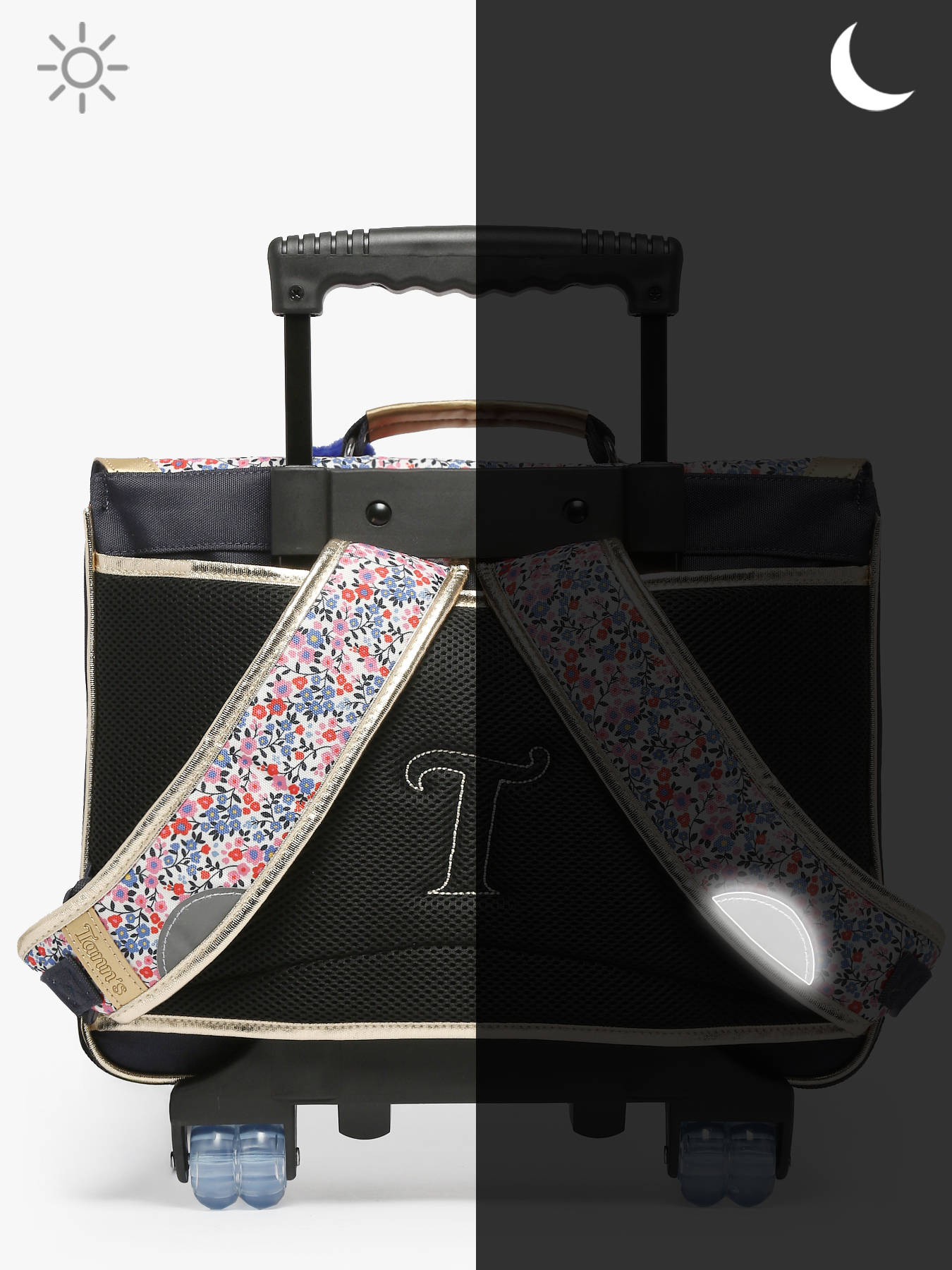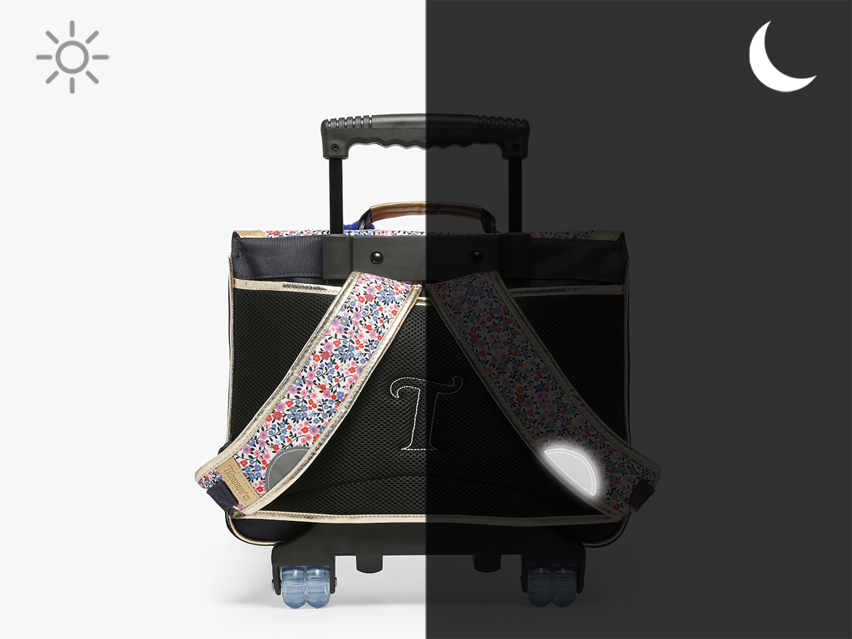 • Housse cache-roulettes pour éviter de se tâcher lorsque le cartable est porté sur le dos