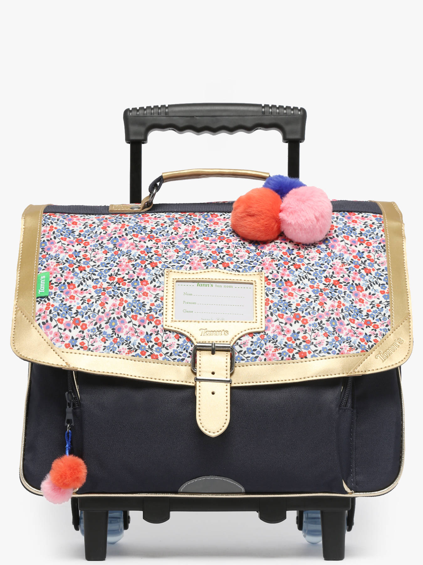38 cm - 17 litres - 2.1 kg ~ Le cartable à roulettes 38 cm signé Tann's fera sensation pour la rentrée en CP, CE1 et CE2. Avec ses 2 larges compartiments, ce cartable peut aisément contenir de nombreuses fournitures scolaires telles que cahiers, classeurs et dossiers allant du format 17x22 cm jusqu'au format A4. Grâce à sa poche avant zippée, le goûter et l'agenda seront bien à l'abri tandis que tous les autres petits objets viendront se placer dans la poche zippée intérieure du cartable. Ce cartable pratique et résistant possède également une poche spéciale règle, des coutures renforcées ainsi que des renforts au fond et dans les angles. Composé de polyester recyclé à partir de bouteilles en plastique, ce cartable est résistant à l'eau. Pour le confort et la sécurité de votre enfant, ce cartable est doté de bretelles et d'un dos rembourré, de bandes réfléchissantes ainsi que de 4 roues, une poignée double tube rétractable et un emplacement pour ranger les bretelles et les sangles lorsqu'on le fait rouler.