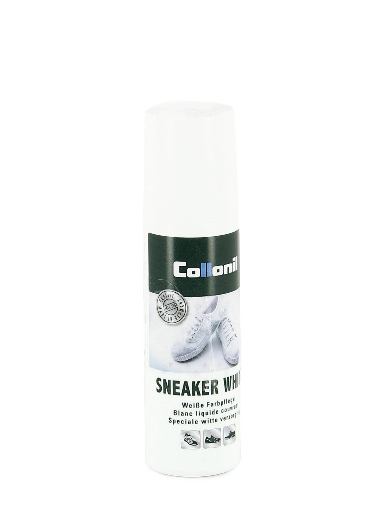 Un soin liquide spécial qui ravive la couleur pour chaussures en cuir lisse ou toile blanche. Son action recolorante permet de recouvrir les éraflures et on retrouve rapide et facilement un blanc éclatant. Tube avec un tampon applicateur.