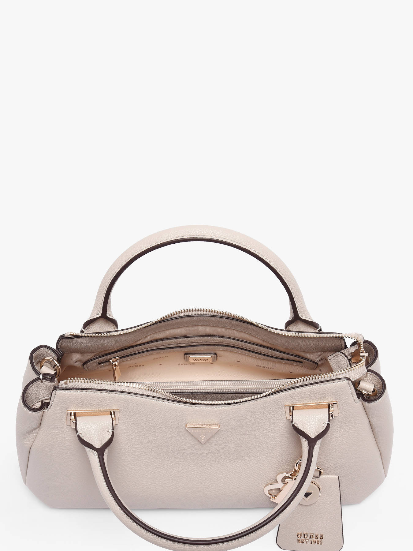 Le sac porté main EVIE GUESS, conçu en P.U., allie style moderne et fonctionnalité. Son extérieur est équipé d’une fermeture zippée sécurisée et d’une poche au dos pratique pour un accès rapide à vos essentiels. La hauteur de l’anse est de 10 cm, idéale pour un porté main confortable. La bandoulière réglable et amovible offre une grande flexibilité, permettant aussi un porté en bandoulière selon vos envies. À l’intérieur, le sac dispose de deux compartiments bien séparés, complétés par deux poches simples et deux poches zippées, parfaites pour organiser soigneusement vos affaires. L’EVIE est un sac polyvalent qui combine élégance et praticité, adapté à toutes vos sorties.