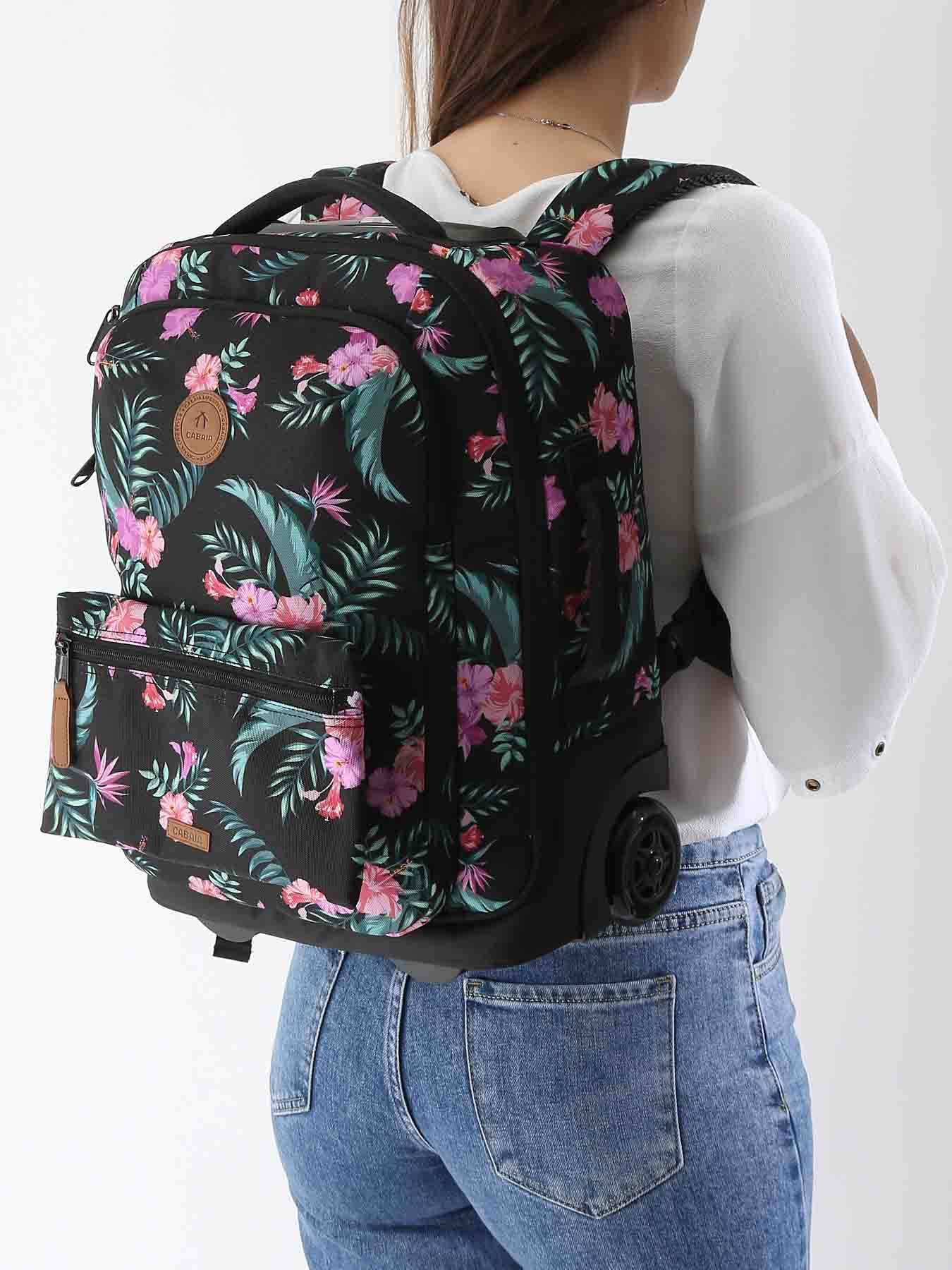 Équipée de bretelles intégrées, elle peut être portée sur le dos comme un sac à dos. Une housse de pluie pratique est incluse pour couvrir les roues et éviter les salissures en mode sac à dos. Elle dispose d’un compartiment accessible à l’avant pour ordinateur (compatible 14 pouces), ainsi que d’une poche extérieure pour une gourde.